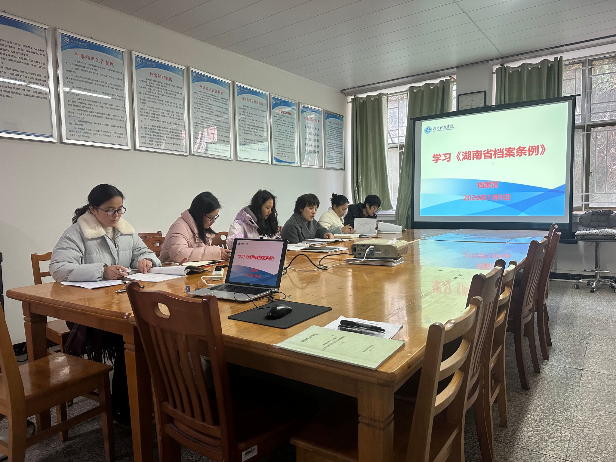 本网讯(通讯员 贾丽君)1月9日,我校档案馆组织全体专职档案工作人员开展专题学习,集中研学《湖南省档案条例》,旨在强化法治意识与业务能力,全面提升档案服务专业化水平。会议指出,此次学习既有助于新进人...