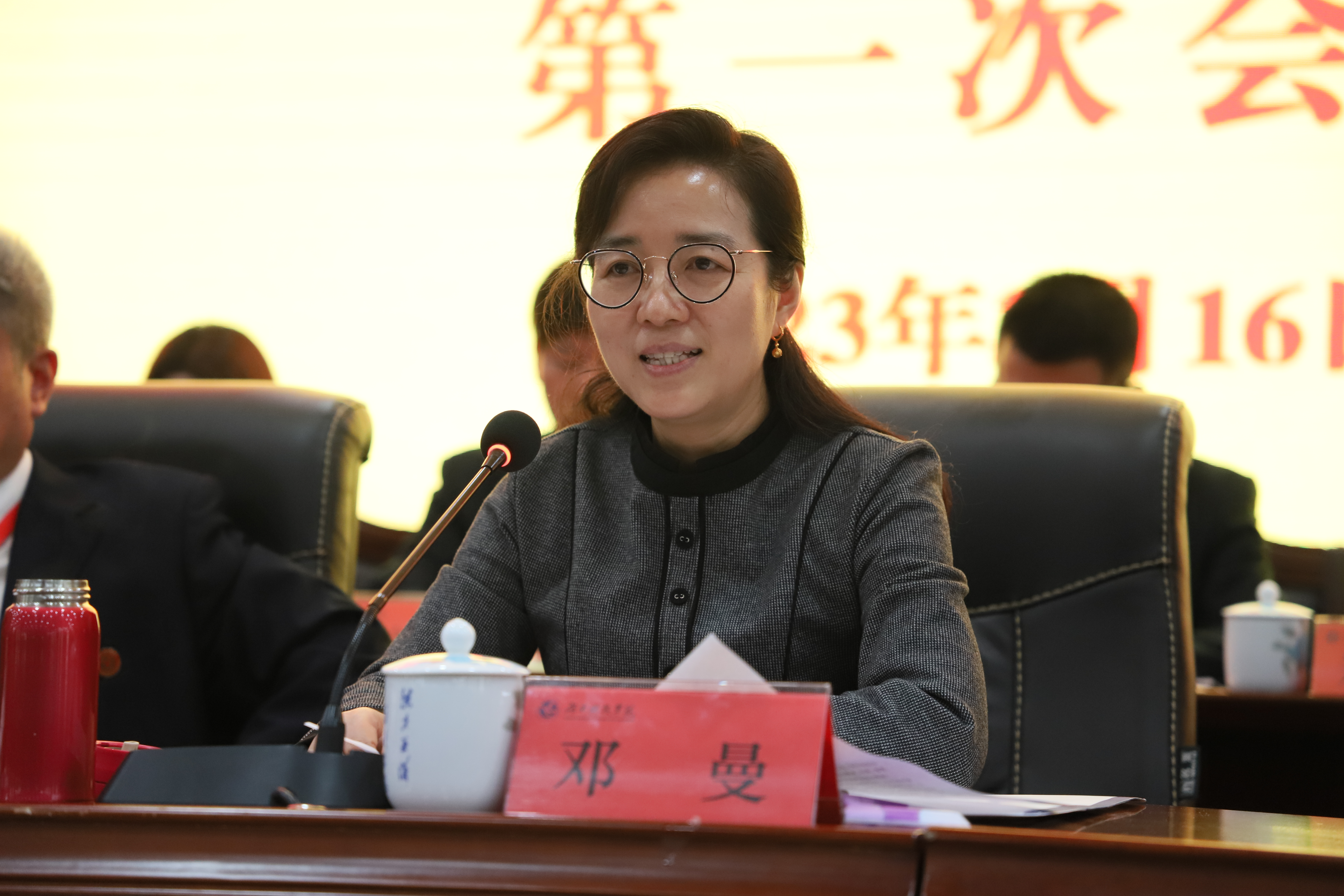 湖南省教育工会副主席邓曼代表省教育工会向大会的召开表示热烈祝贺,向出席本次大会的全体代表及辛勤工作在教学、科研、管理、服务一线的广大教职工致以诚挚的问候和崇高的敬意。她充分肯定了近年来学校工会取得的显著成绩,并对学校工会提出了三点希望:一是架好“连心桥”,强化思想政治引领。学校工会要坚定不移把学习宣传贯彻党的二十大精神引向深入,坚决有力加强工会党的建设,坚持不懈扛牢教职工思想引领政治责任。二是当好“贴心人”,助力教师队伍建设。学校工会要积极为教职工搭建平台,充分发挥自身优势,做到“吸引人、呵护人”,不断提升教职工的获得感、幸福感、安全感,当好教职工的“娘家人”。三是办好“暖心事”,提升服务能力水平。学校工会要努力加强自身建设,聚焦教职工“急难愁盼”,为广大教职工解难题办实事,凝聚学校改革发展强大合力。