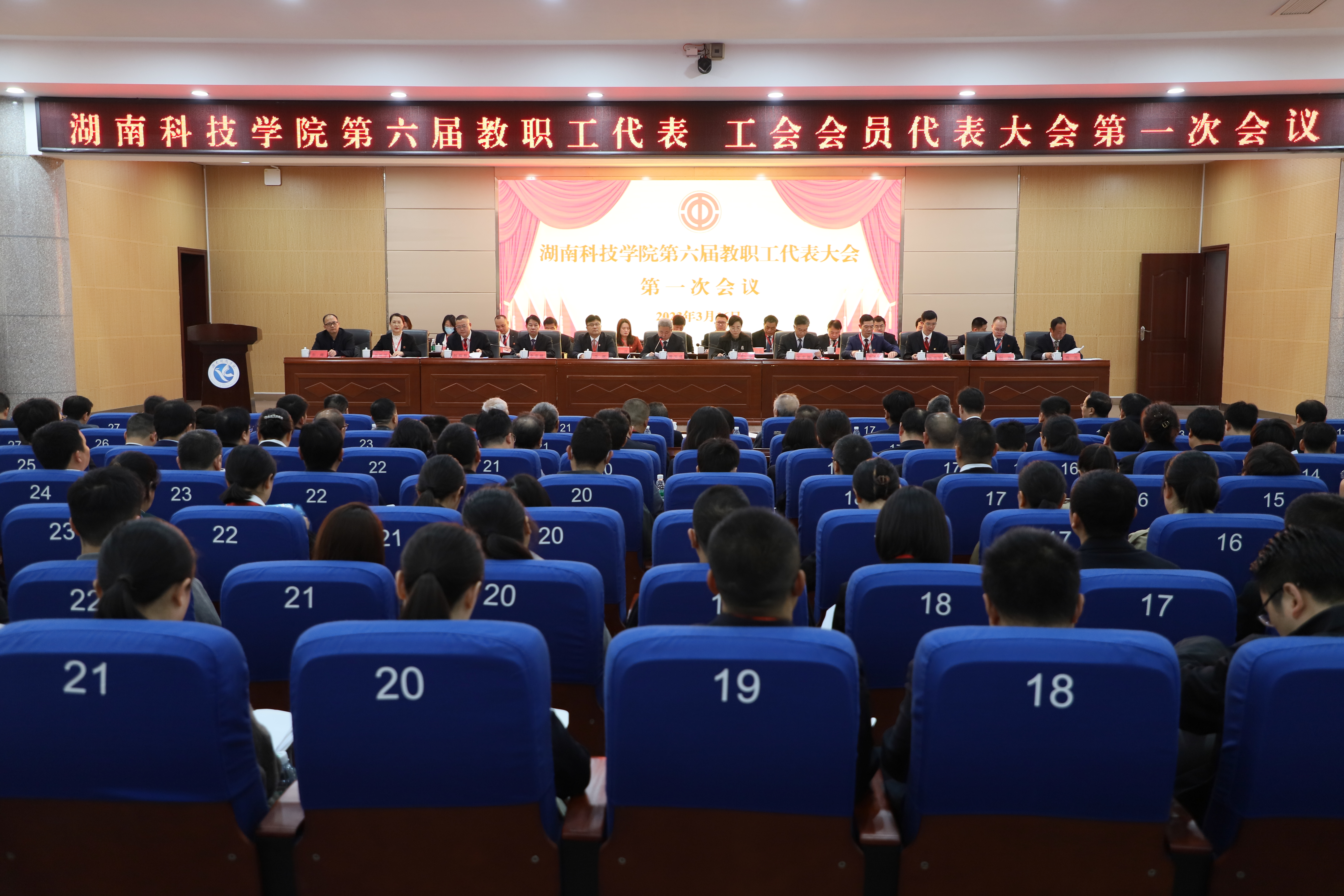 3月16日,我校第六届教职工代表、工会会员代表大会第一次会议在潇湘大讲堂隆重开幕。湖南省教育工会副主席邓曼,湖南省教育工会高教部部长彭峰,党委书记曾宝成,党委副书记、校长李钢,校领导宋宏福、李常健、吴小林、何福林、陈灿军、郑银芳、何海,党委委员、组织部部长杨涛,全体代表、特邀嘉宾和列席代表207人齐聚一堂,共同商讨学校发展大计。
