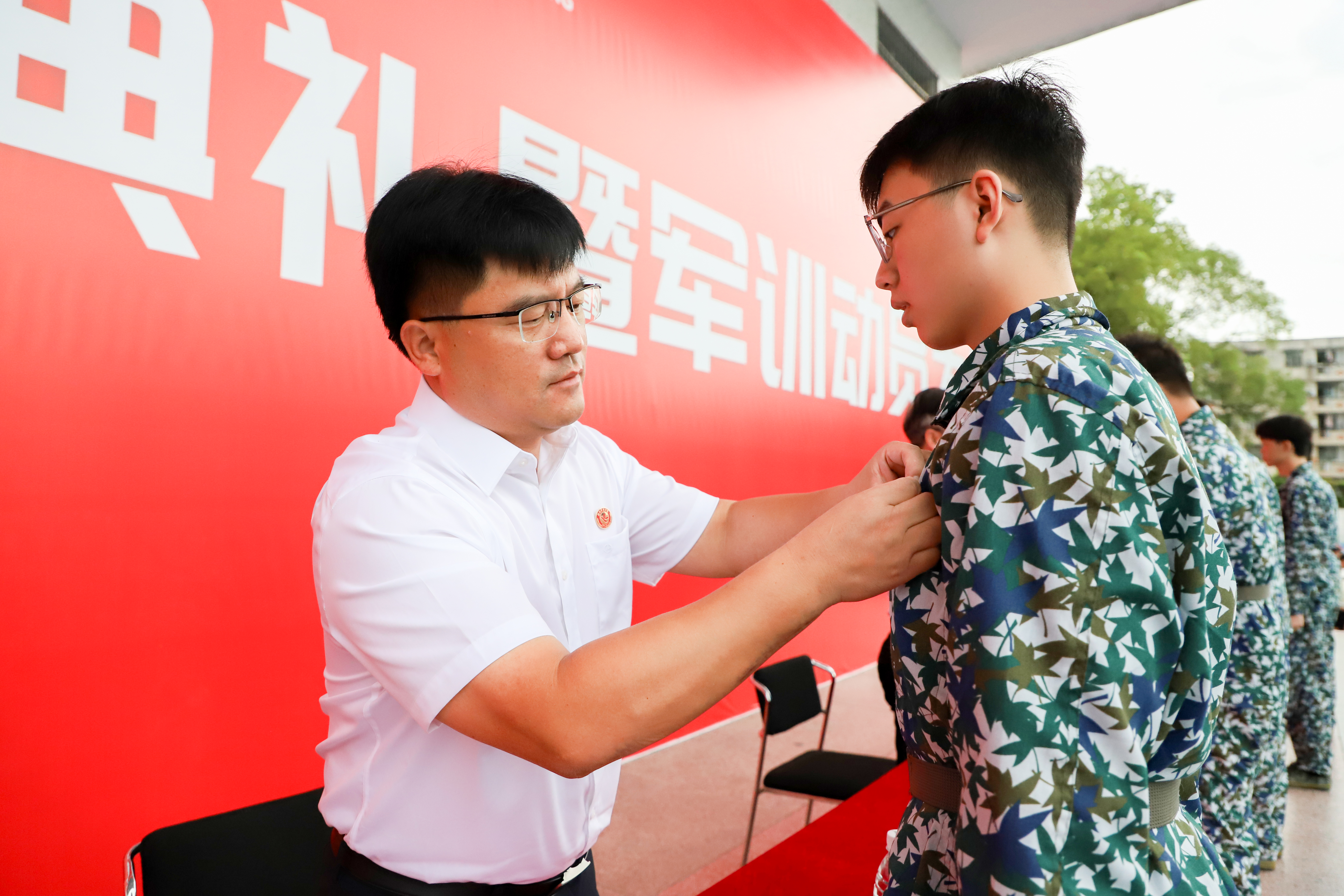 校领导、党委委员为2023级新生代表佩戴校徽,各教学学院院长、党总支书记为本院新生代表佩戴校徽。