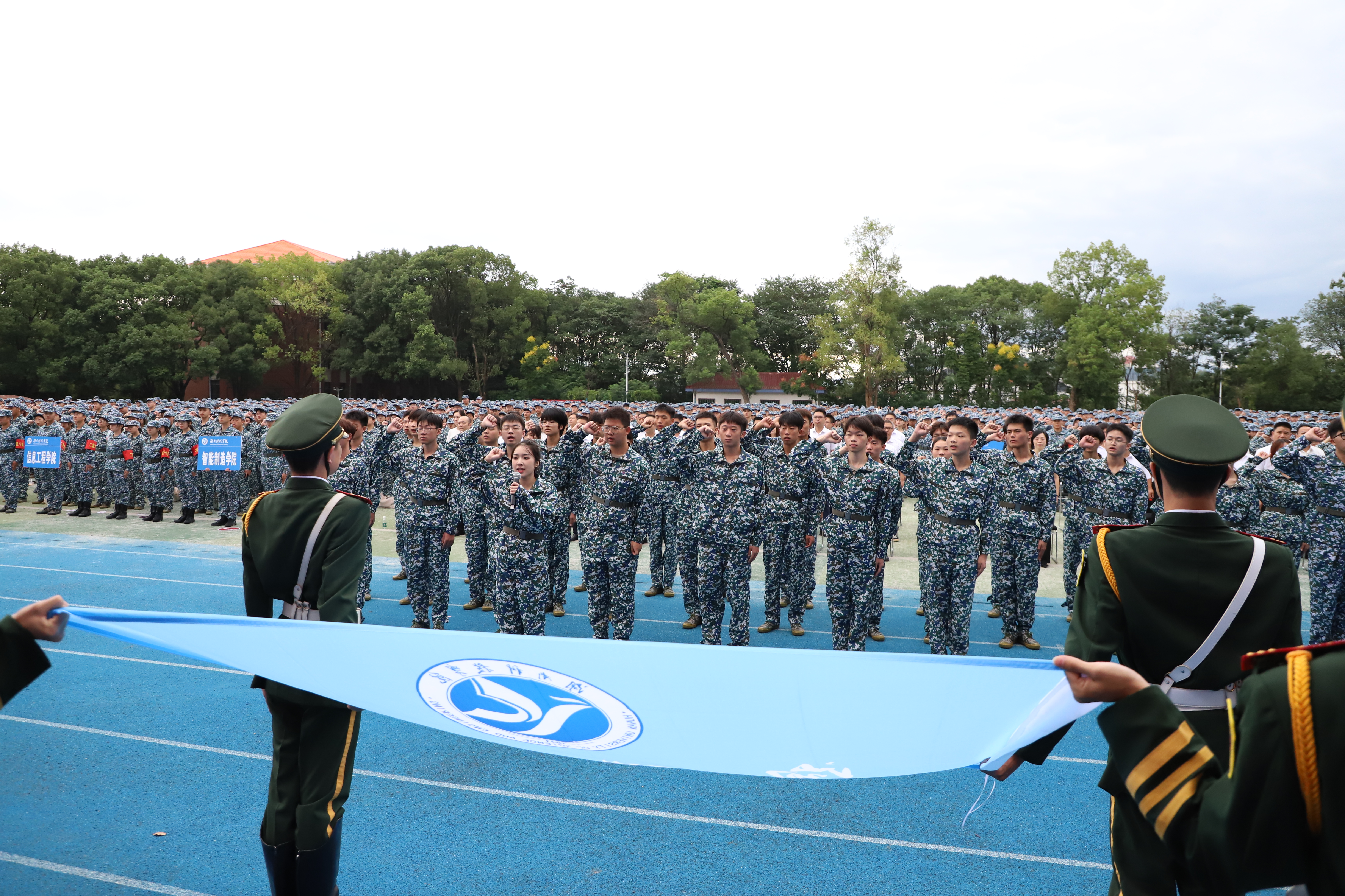 全体2023级新生面向校旗进行了学子宣誓。