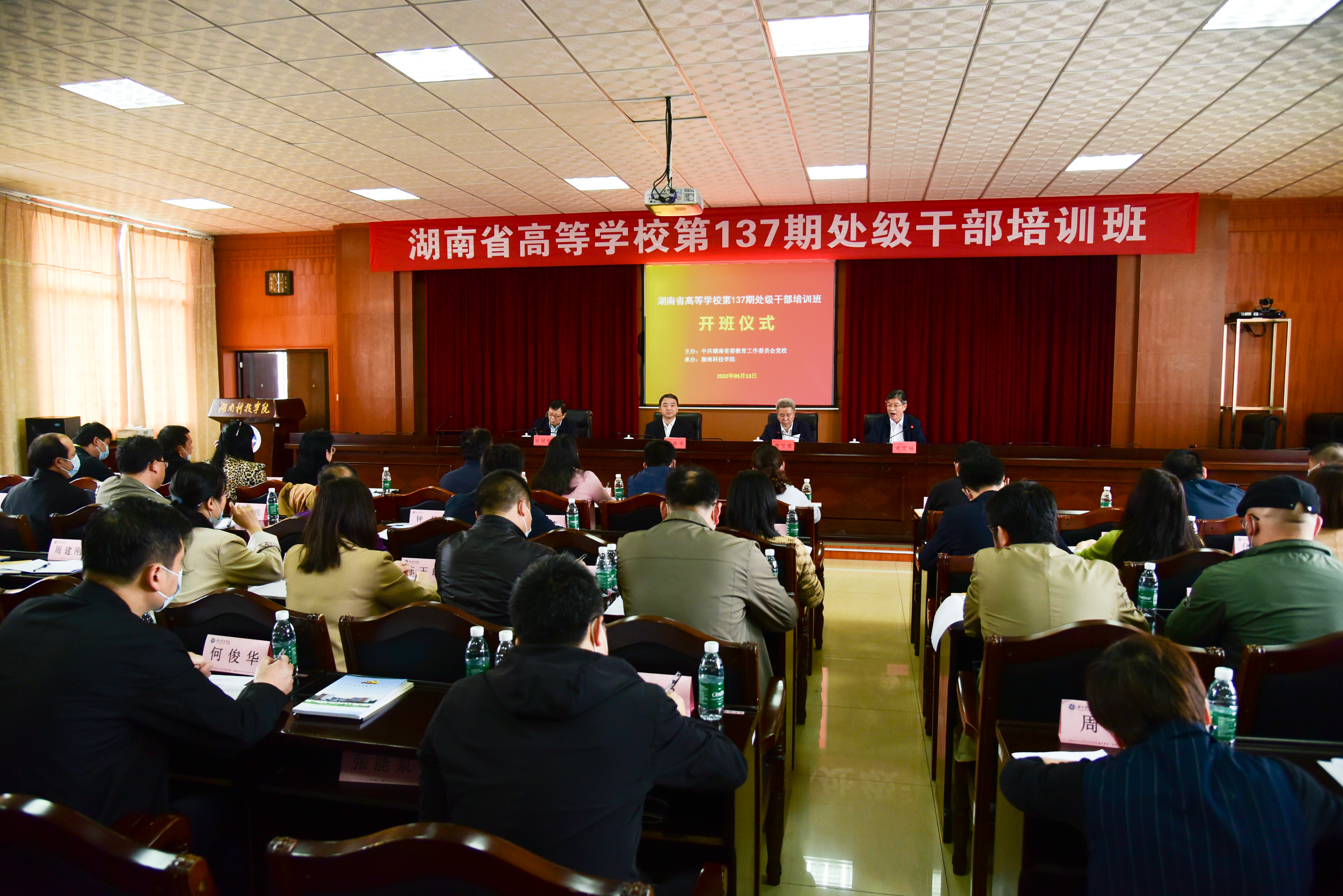 为加强我校处级干部政治理论培训、夯实理论基础、增强党性修养,5月13日下午,湖南省高等学校第137期处级干部培训班开班仪式在行政楼举行。省委教育工委副书记、省教育厅党组成员、省委教育工委党校校长王建华,省委教育工委党校常务副校长、省高校干部培训中心书记、主任刘国华,校党委书记曾宝成,党委副书记宋宏福出席本次仪式。开班仪式由宋宏福主持。