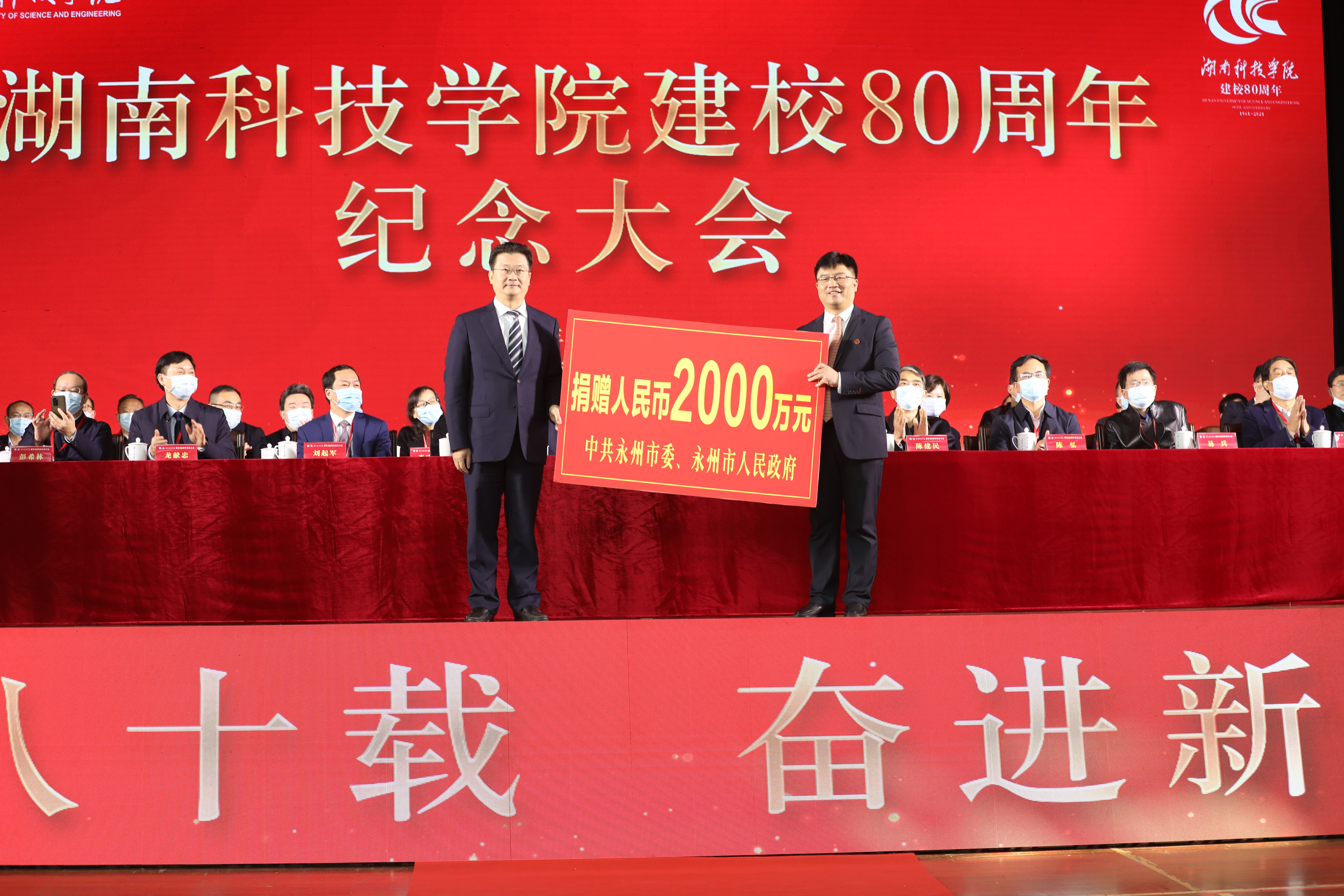 弦歌不辍八十载,薪火相传谱华章。12月11日,学校建校80周年纪念大会在体育馆隆重举行。湖南省教育厅党组成员、副厅长、省委教育工委委员左清,中共永州市委副书记、代市长陈爱林,副市长谢景林出席大会。全体校领导、党委委员,地方政府代表,兄弟学院代表,校友代表与在校师生共一千二百余人欢聚一堂,共襄盛典。