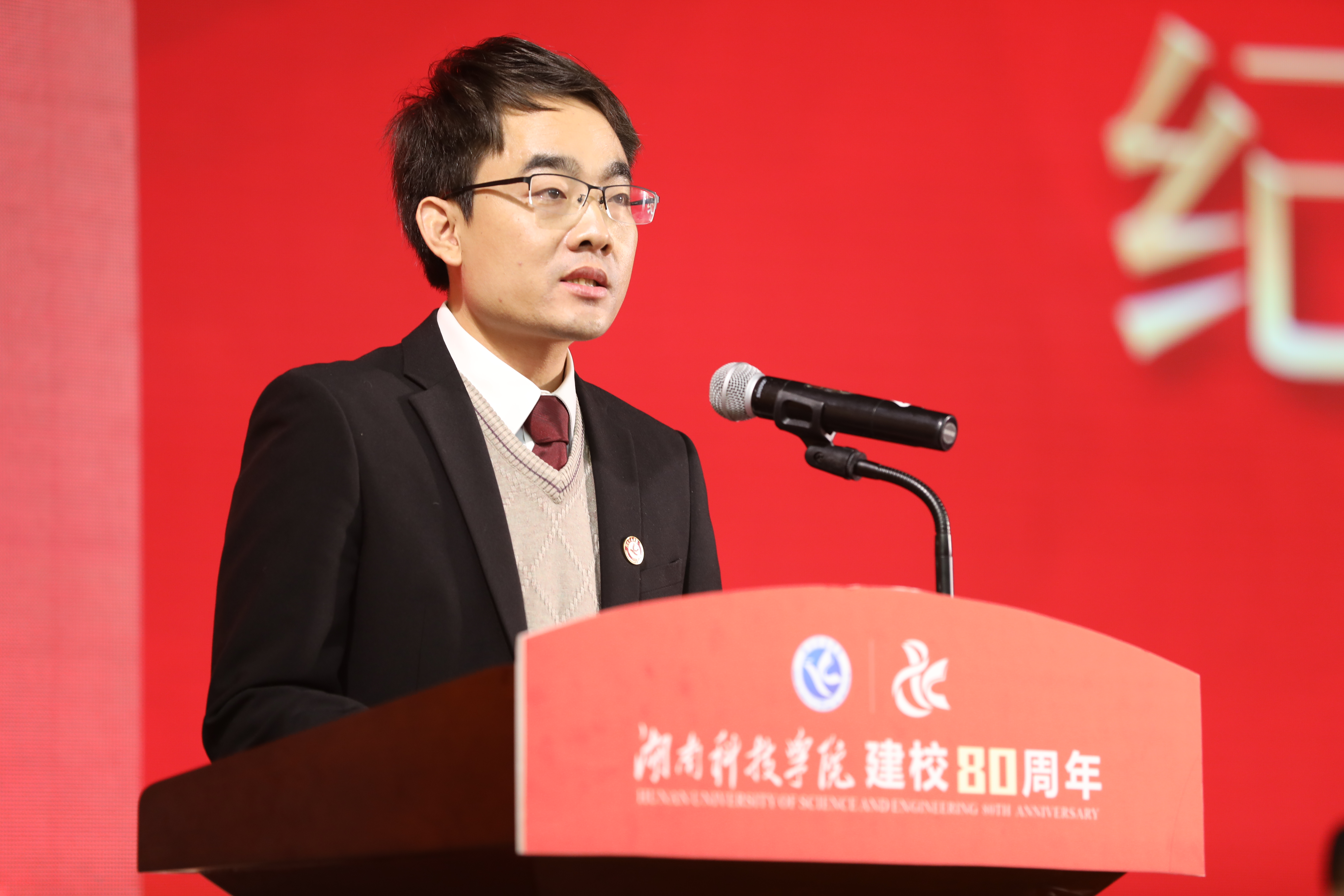 教师代表覃佐东作《立德树人担使命 培根铸魂育英才》建校八十周年大会汇报。他说,80年风雨征程,学校肩扛使命,勇立潇湘潮头,涵养千年文脉,内涵建设和特色发展齐头并进;80年勤耕细耘,学校培养各类人才9万余人,把创建地方性高水平应用型大学的丰碑立在永州大地上。
