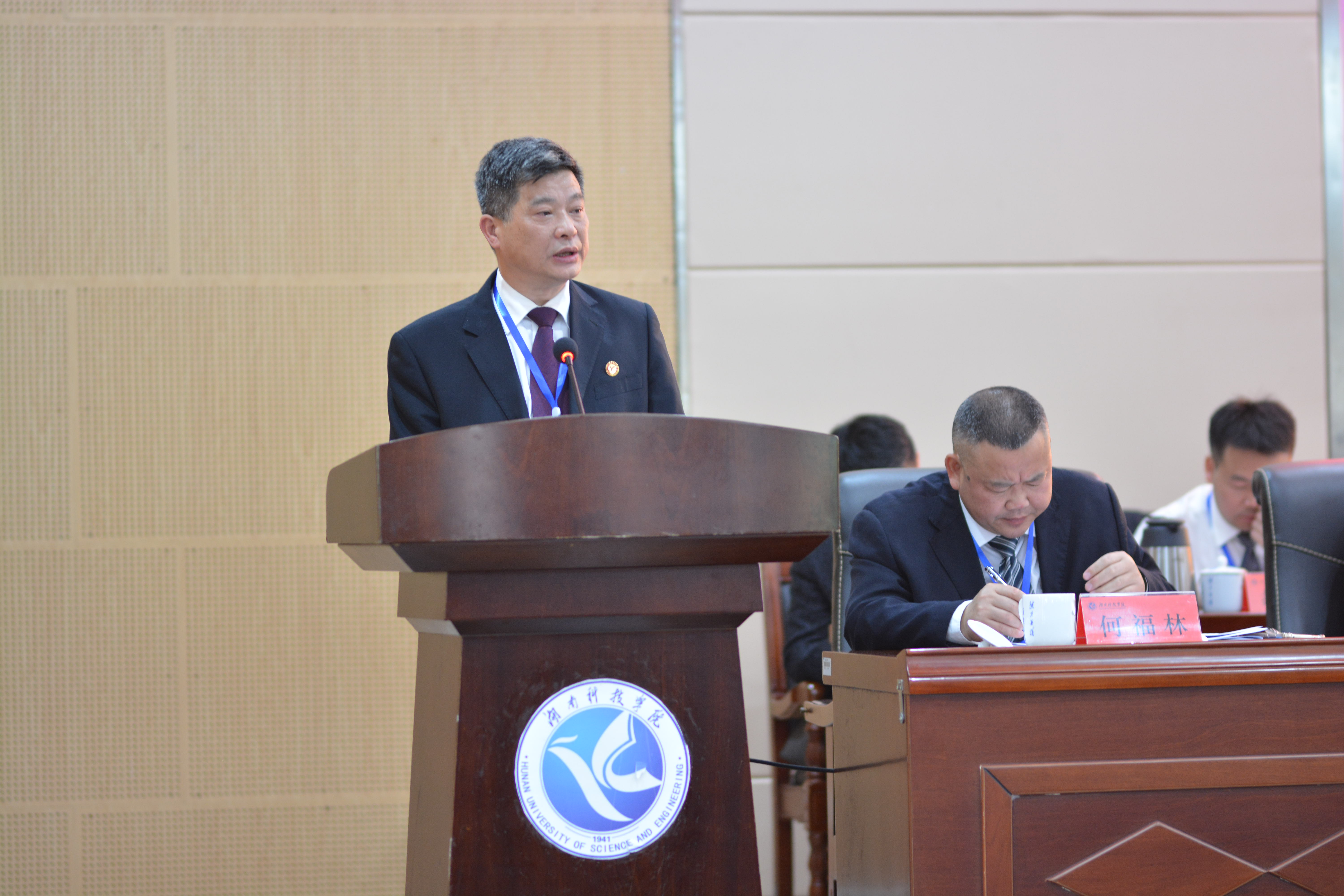 校长李钢作题为《攻坚克难求突破 锐意进取谋发展 奋力推进学校事业迈上新台阶》的工作报告。李钢在报告中总结回顾了2019年学校工作。他指出,2019年,学校坚持以习近平新时代中国特色社会主义思想为指引,全面贯彻党的十九大、十九届二中、三中、四中全会精神,坚决落实全国全省教育大会、新时代全国全省高等学校本科教育工作会议精神,以党的政治建设为统领,扎实开展“不忘初心、牢记使命”主题教育,坚持“以本为本”,推进“四个回归”,落实立德树人根本任务,推进学校治理体系和治理能力现代化,较好地完成了2019年工作要点,谱写了学校事业发展的新篇章。