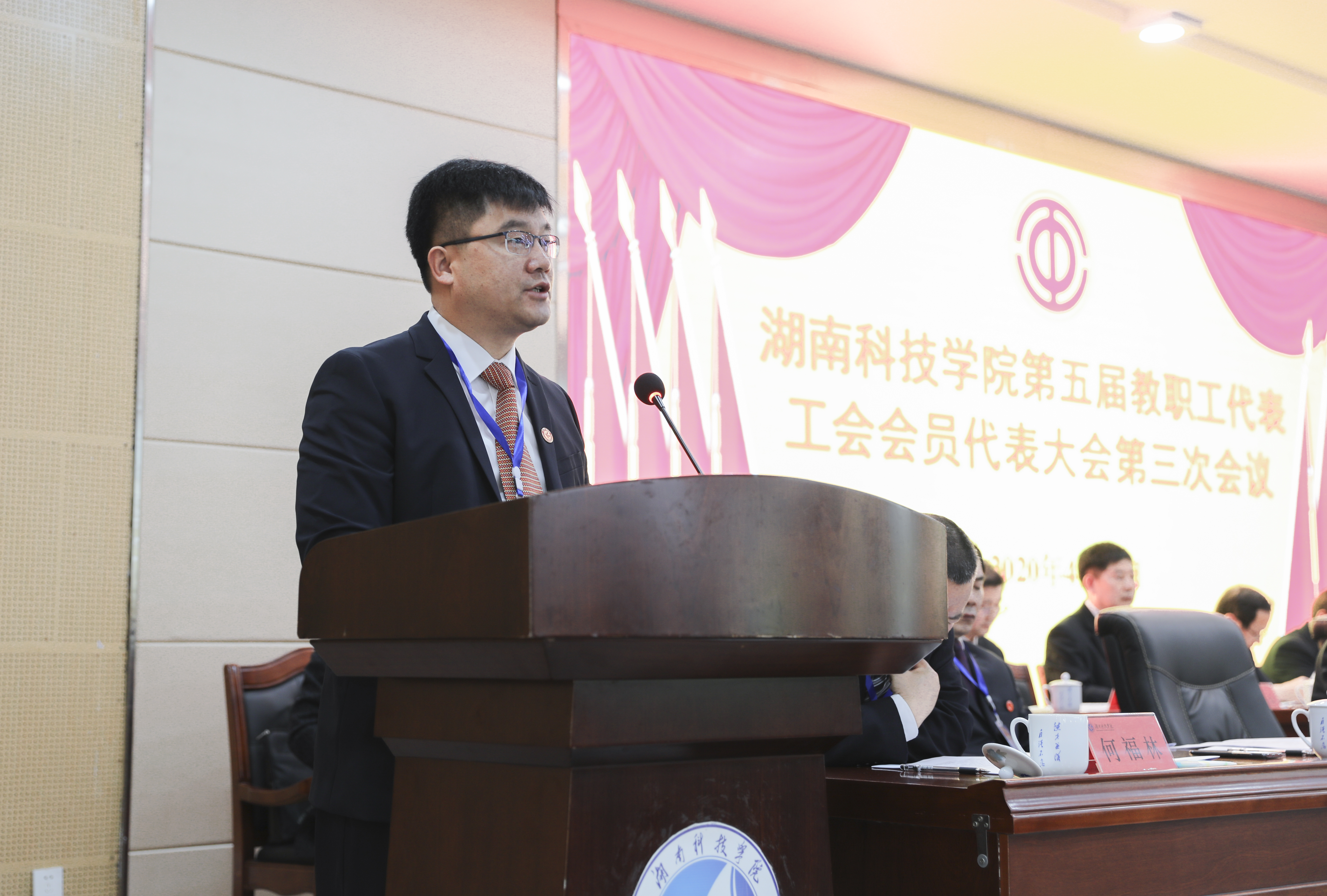 党委副书记、工会主席唐艳明作题为《贯彻“六个坚持” 进一步推进工会工作再上新台阶》的工会工作报告。他回顾了2019年的工会工作并提出了2020年工会工作新任务:一是注重政治引领,进一步优化政治生态;二是加强民主管理,进一步推进依法治校;三是注重教育培训,进一步提高职工素质;四是强化服务意识,进一步做好关爱工程;五是开展文体活动,进一步培育校园文化;六是加强自身建设,进一步提升工会活力。