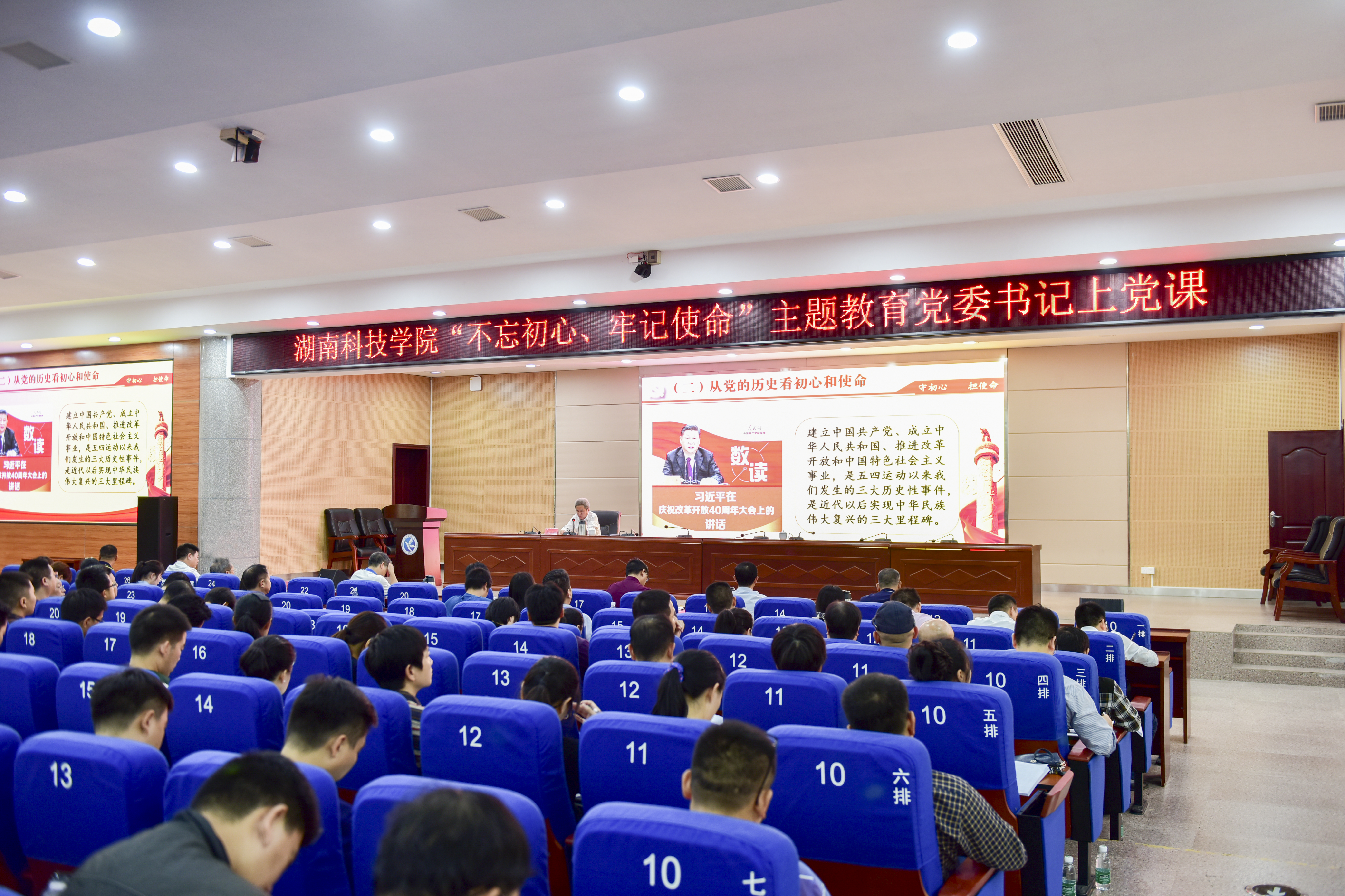 在第二批“不忘初心 牢记使命”主题教育深入开展之际,10月9日晚,党委书记曾宝成为全校教职工党员讲授“不忘初心 牢记使命”专题党课。全体校领导,党委委员,副处级以上干部和教职工党员参加。党委副书记唐艳明主持报告会。