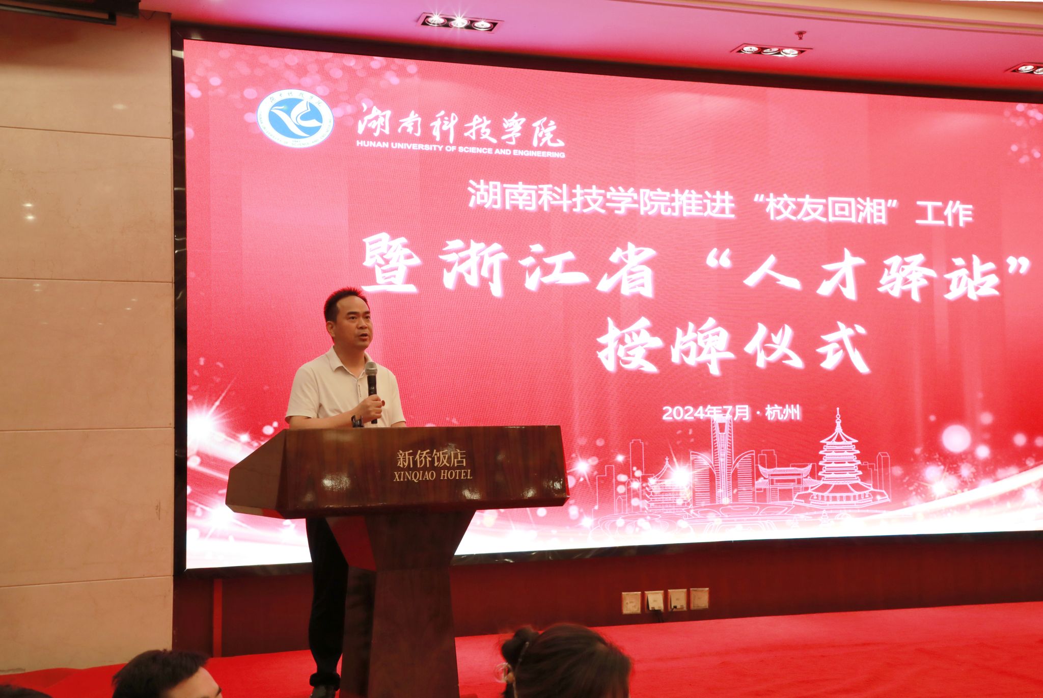 浙江工业大学汤智教授作为代表发言。他表示成立“人才驿站”是推动校友与母校、校友与校友之间交流合作的重要举措,有助于更好地发挥校友资源的优势,促进共同发展。
