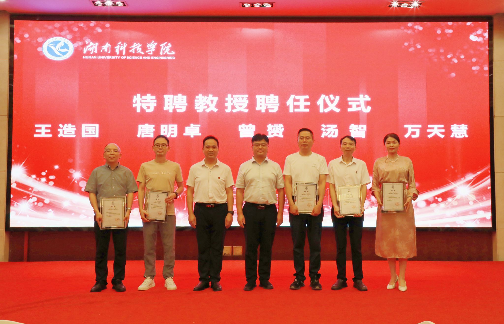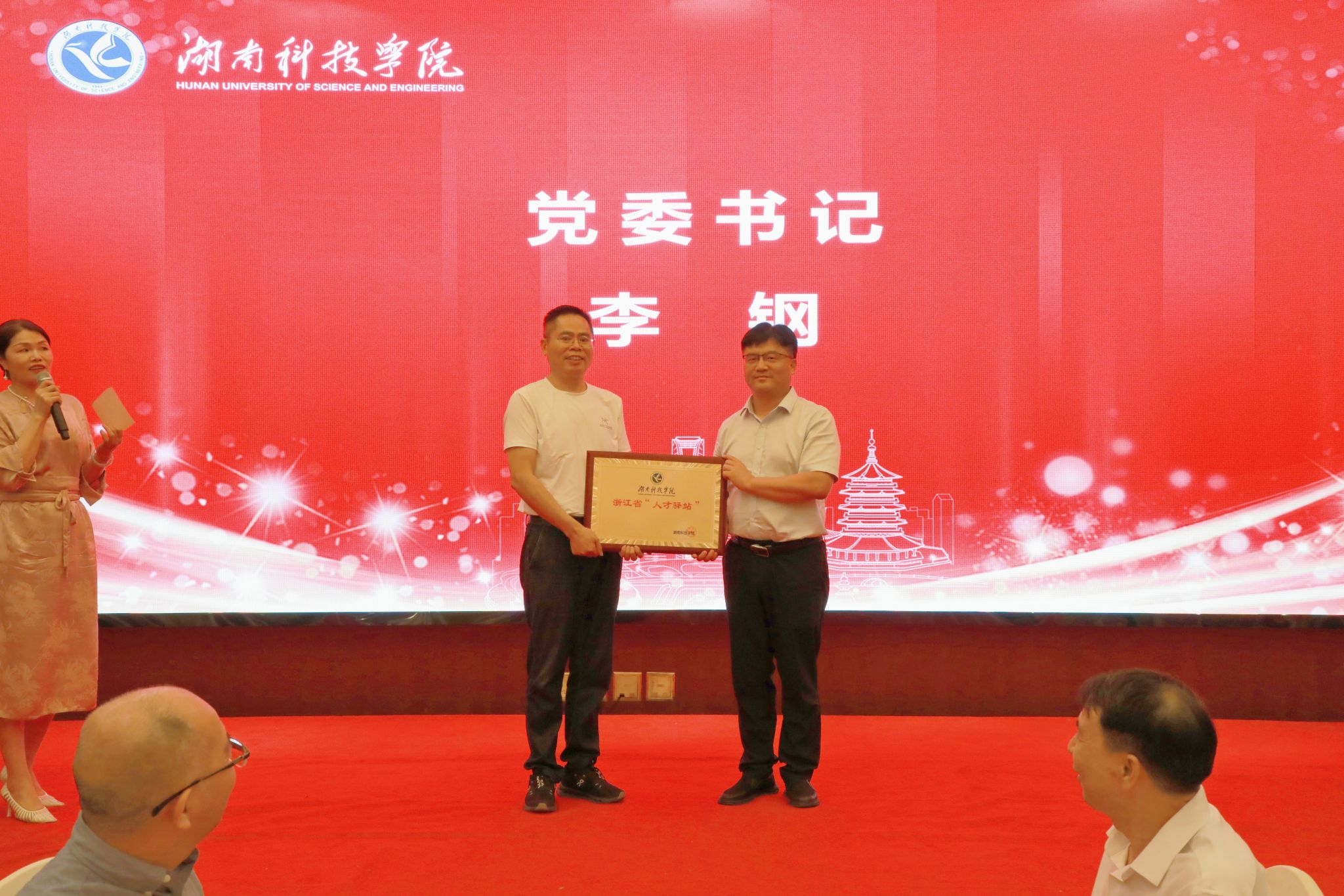 李钢、黄创霞为“人才驿站”首批特聘教授王造国、唐明卓、豆星星、曾赟、汤智、万天慧等颁发聘书。