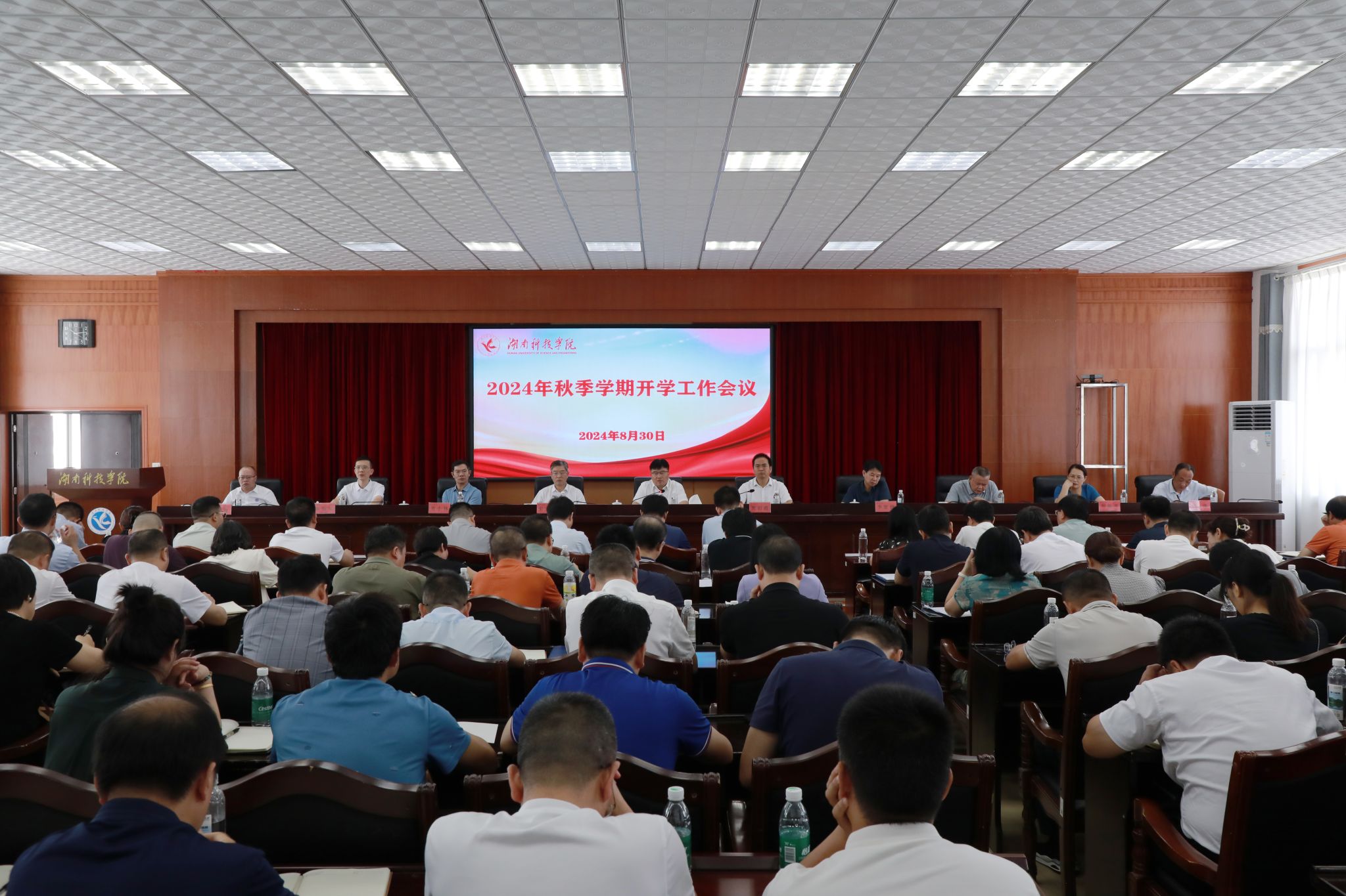 本网讯(记者 向薛峰 谢志豪)8月30日,学校召开2024年秋季学期开学中层干部大会,党委书记李钢、校长黄创霞,校领导宋宏福、李常健、吴小林、何福林、陈灿军、郑银芳、何海,党委委员、组织部部长杨涛以及全体中层干部参加会议。