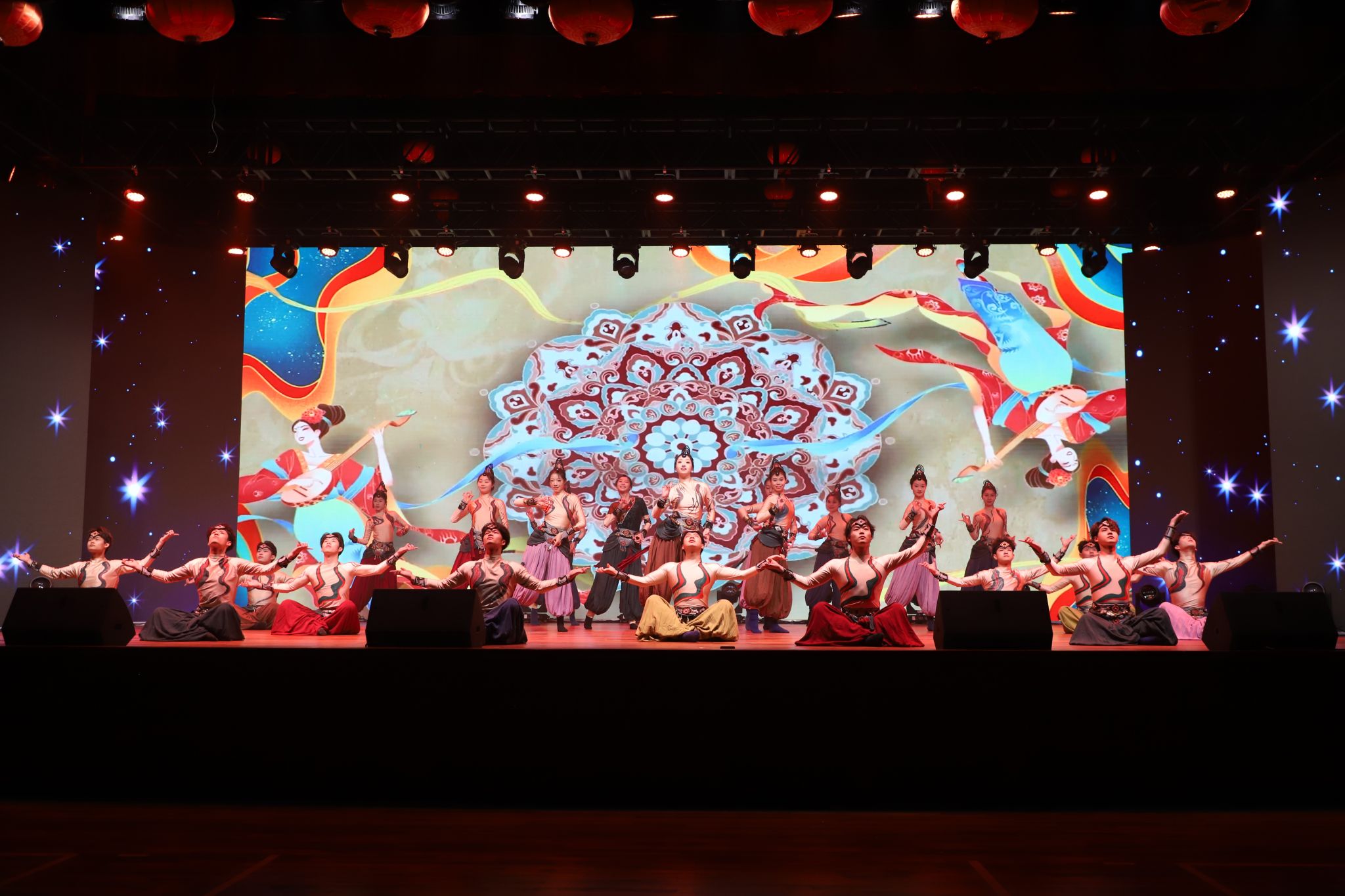 我校学子带来的舞蹈《Fire》点燃全场,以蓬勃朝气展现青春的热烈与张扬;音乐与舞蹈学院学子演绎的舞蹈《铅华·满壁》,以婀娜之姿勾勒敦煌岁月,传递出深厚的文化底蕴。歌曲《阳光路上》《永冲锋》以激昂旋律致敬奋斗精神与家乡情怀,将现场气氛推向高潮。最终,晚会在全体演员与观众共同唱响的《相亲相爱》中圆满落幕。