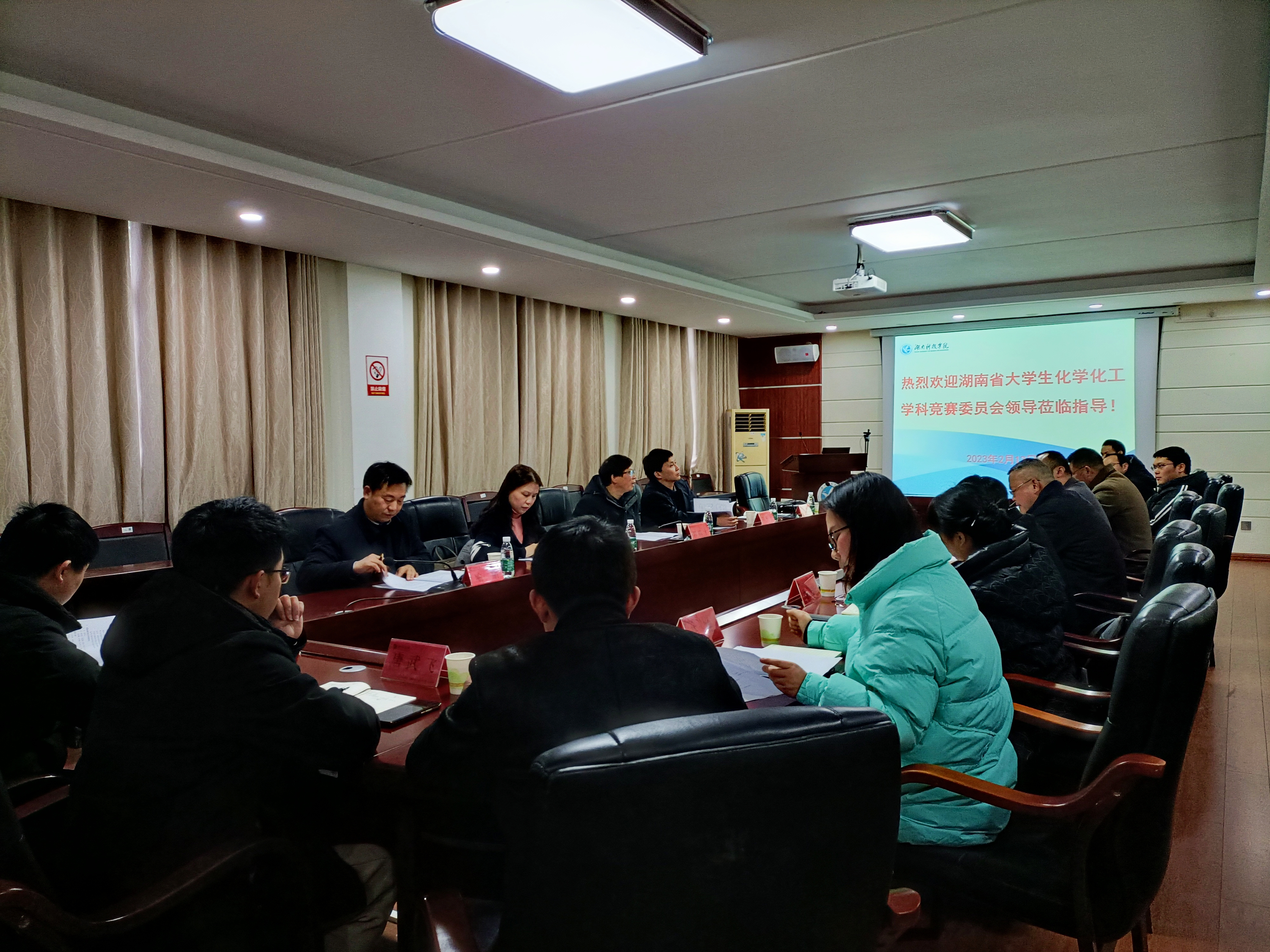 本网讯(袁霖 刘乐)2月13日,湖南省大学生化学化工学科竞赛委员会主任郭栋才教授一行来我校化学与生物工程学院考察第十三届湖南省大学生化学化工学科竞赛筹备工作。校党委委员、副校长何福林,化学与生物工程学院领导,竞赛筹备工作小组成员出席会议。
