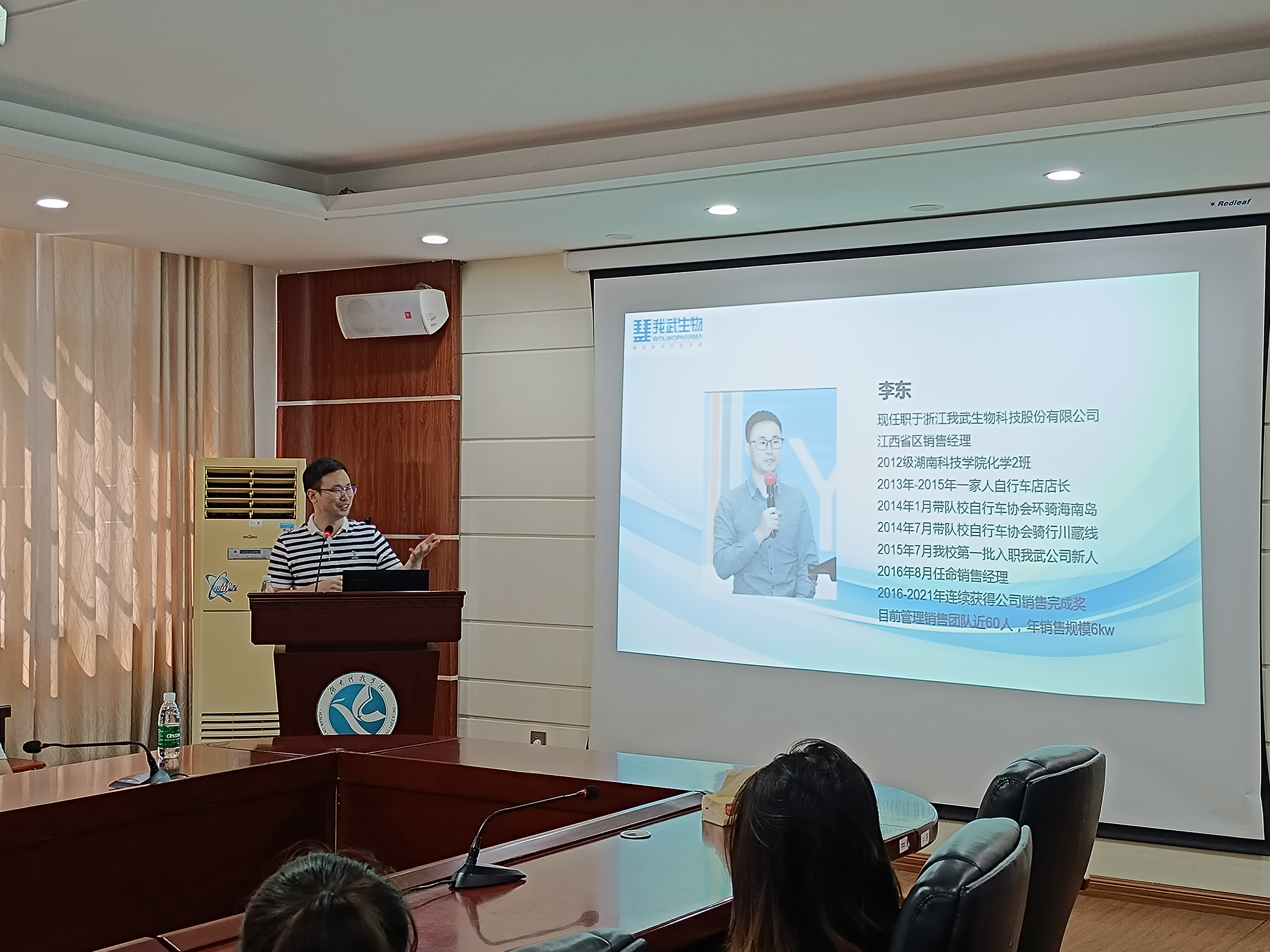 会议伊始,袁霖介绍了李东学长的个人履历。李东现任职于浙江我武生物科技股份有限公司江西省销售经理,管理销售团队近60人,年销售规模6千万。