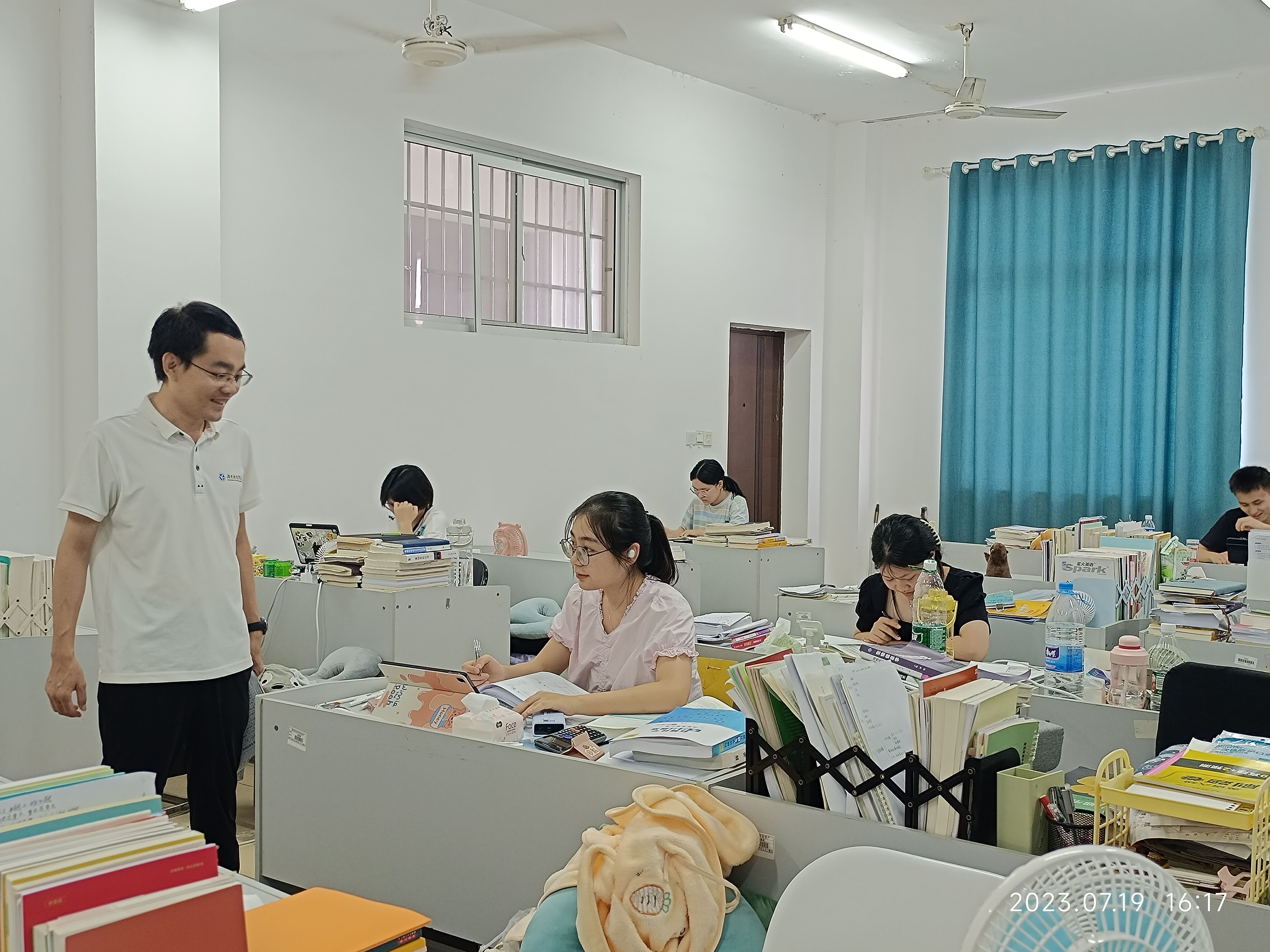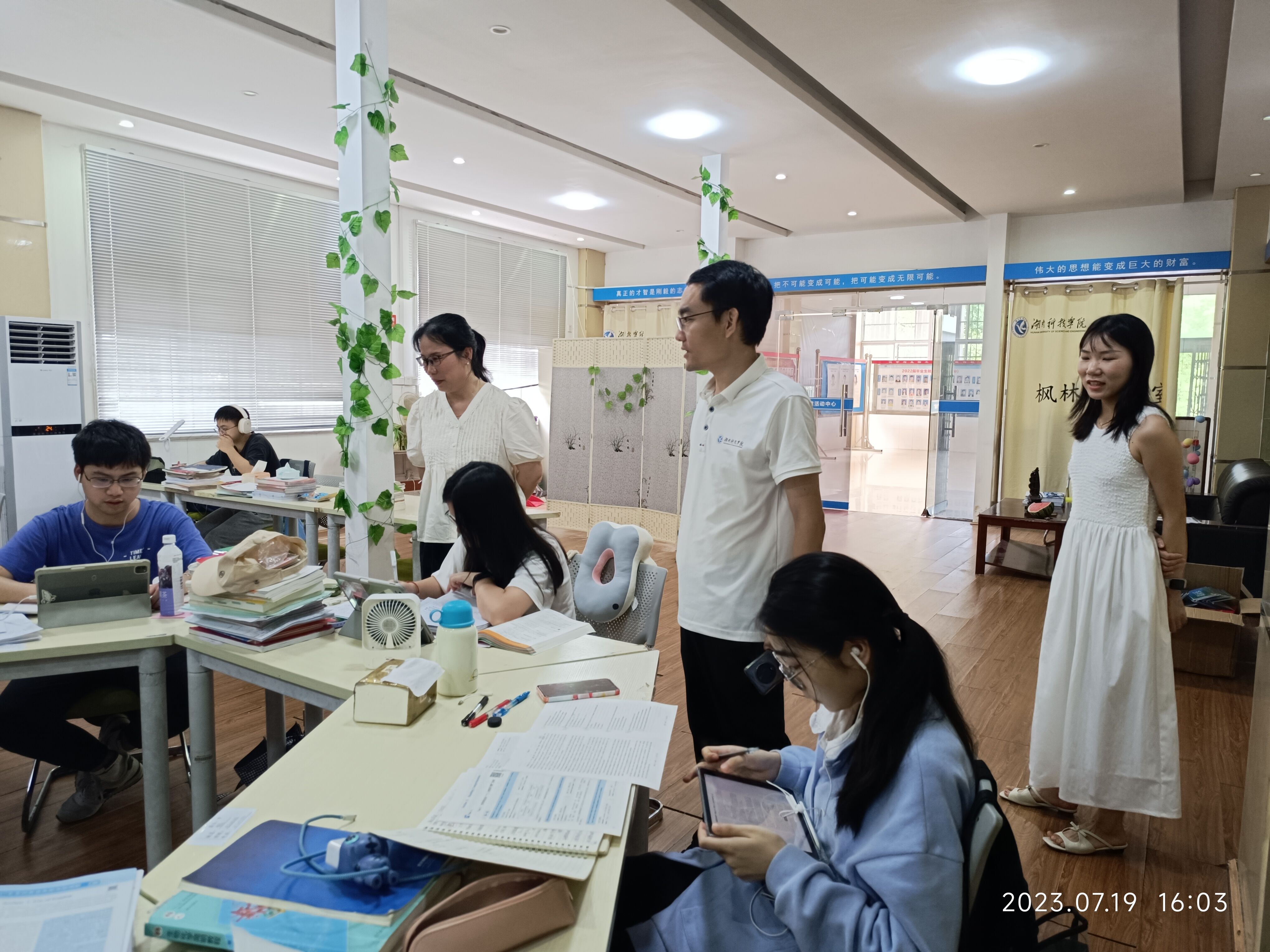 (本网讯 张自强)为深入了解暑期留校学生的思想、学习和生活状况,719日下午4时,化学与生物工程学院院长覃佐东、党总支副书记基艳、学工办副主任李燕以及2020级辅导员老师走访学院考研自习室并看望留校备考学生。