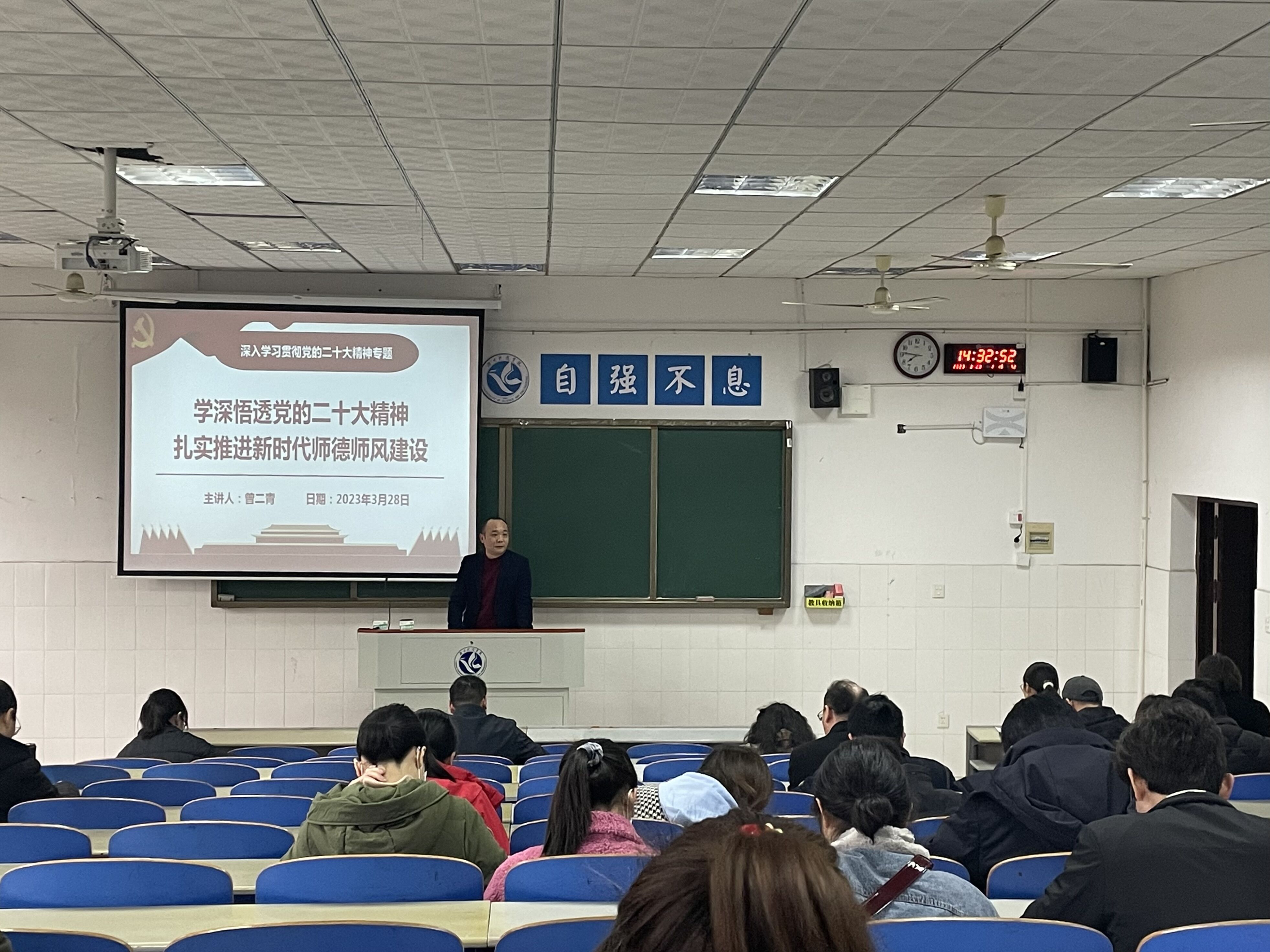 最后,覃佐东对全院教职工提出希望和要求:高校教师是社会主义精神文明的建设者和传播者,牢固树立良好的师德师风,既是党和人民对教育工作者最基本的要求,也是推动学院前进式发展的需要,必须从全局和事业发展的高度来看待;在座的每一位教职工都要从我做起,立师德、扬师风、强师能、铸师魂,做到无愧于学生,无愧于社会,无愧于党和人民赋予的神圣使命。