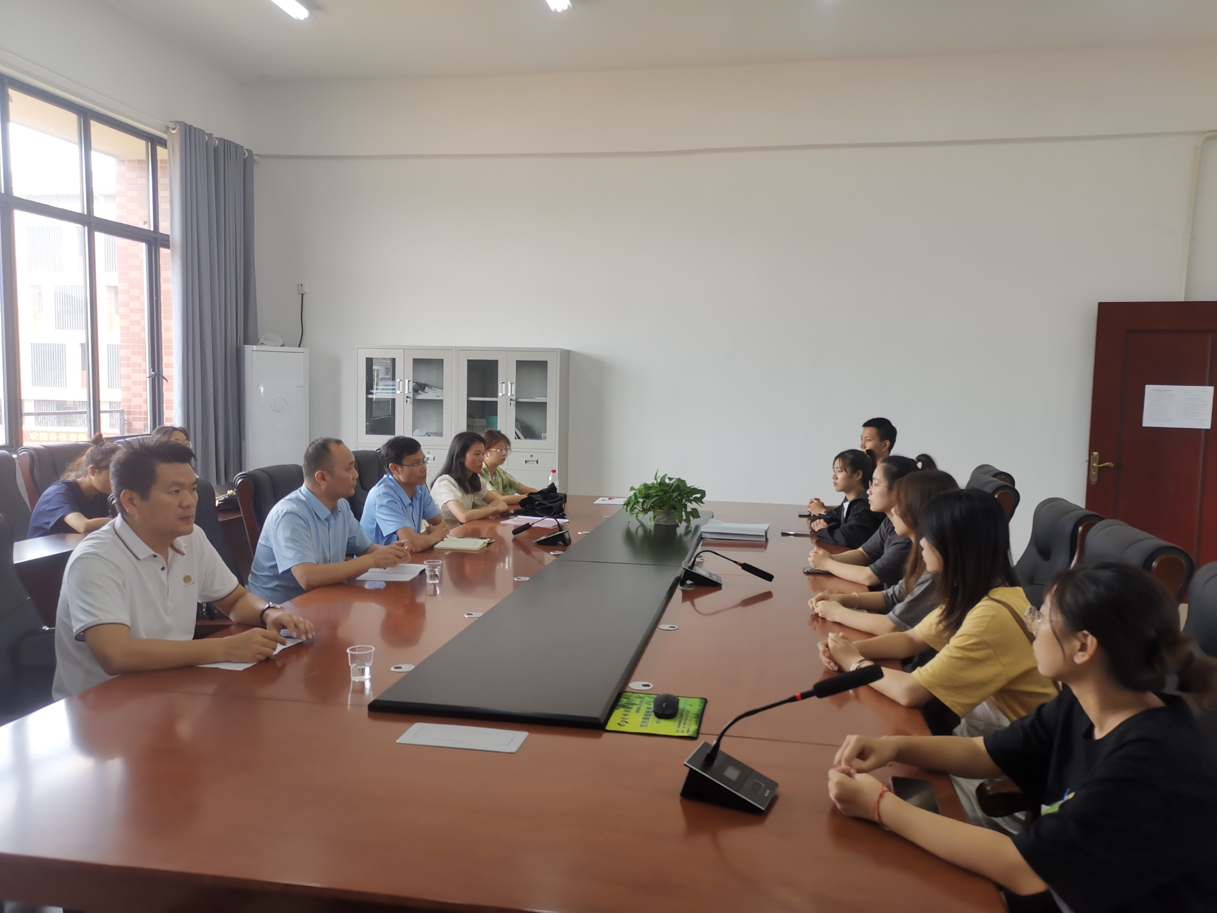 曾二青对学生的实习情况进行了深入的了解,并与甘甜中学校长邓伟华、实习学生交流座谈。实习学生分别汇报了自己在实习岗位上的表现、收获、职业规划等情况。邓伟华对我校积极选派优秀实习生,帮助解决师资力量短缺的问题表示衷心的感谢,并对我校实习生在师德师风、组织纪律、学业专长等方面给予了高度肯定。