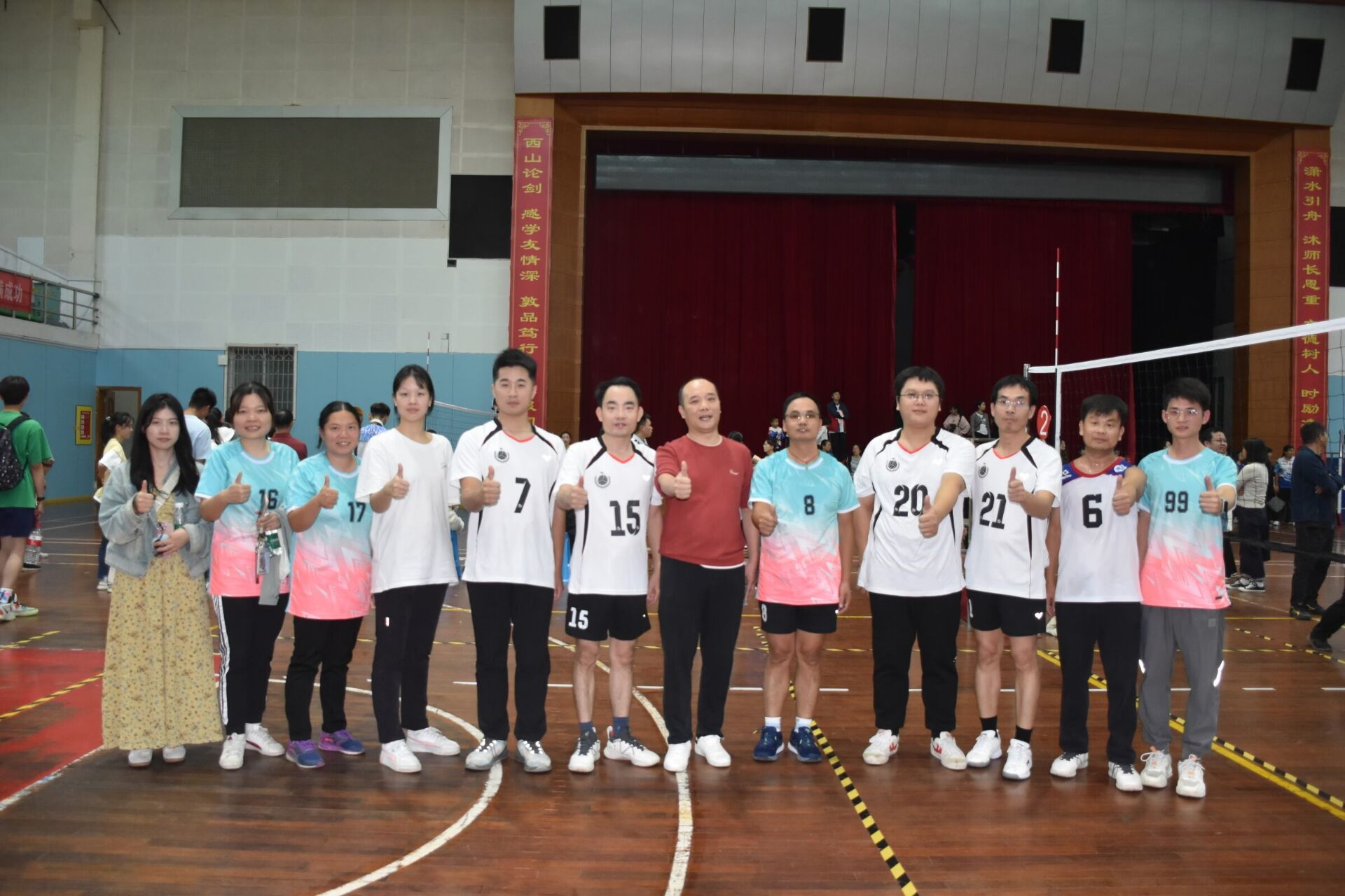 从小组赛开始老师们就展现了敢打敢拼的竞技状态,昔日的老师化身球场健将,各施绝技,发球、起跳、拦网、扣球,每一次精彩的传球与得分都引来欢呼阵阵,“化生院加油、化生院加油”的助威声铿锵有力,此起彼伏,运动员们充分发挥出自己精湛的个人技术和熟练的战术配合。当比赛进入白热化状态,我院教师沉着冷静、稳扎稳打,在一场场比赛中打出了独属于化生院的教师风采!