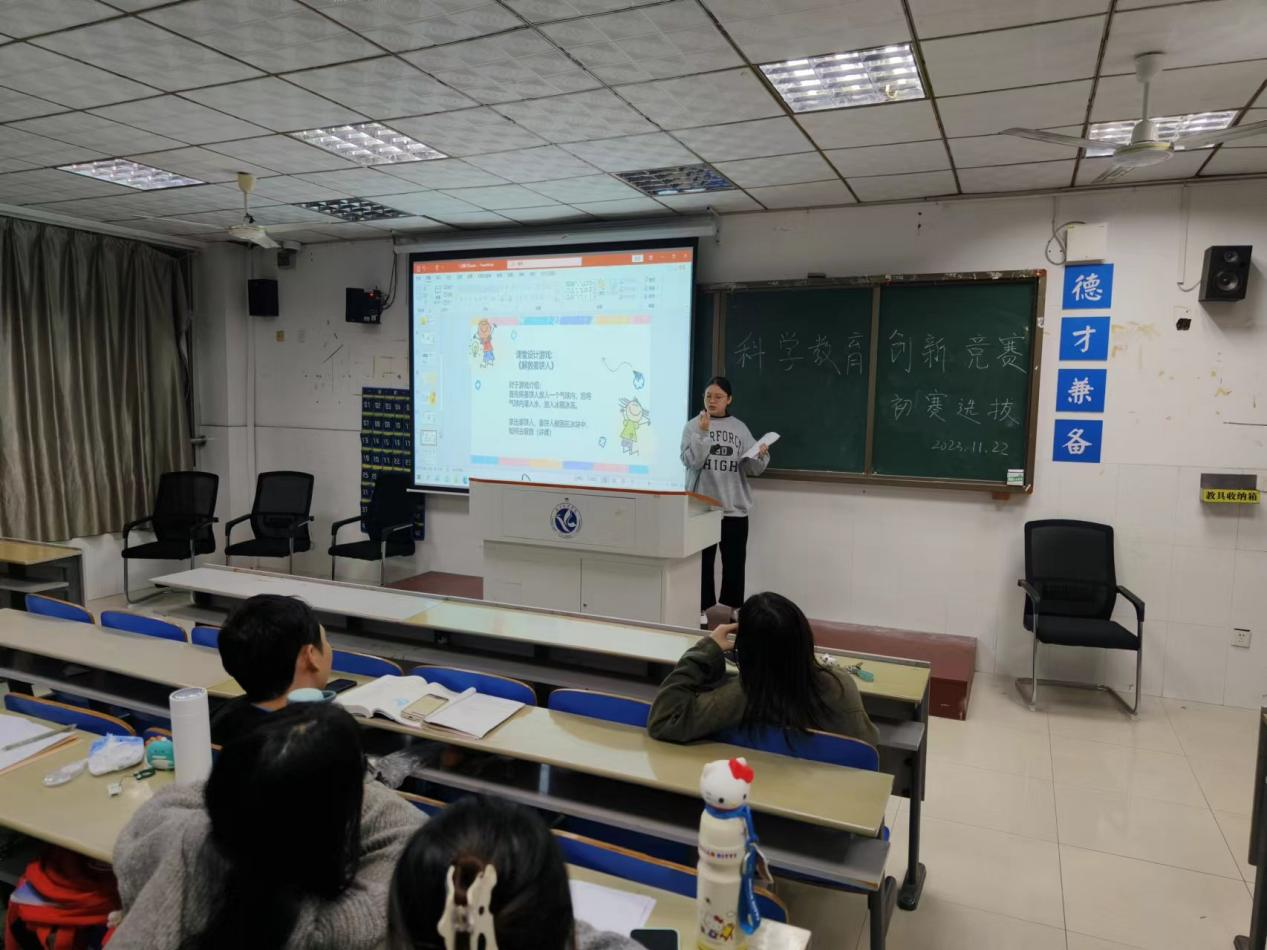 本网讯(曹颖 廖阳 林颖君)为深入贯彻习近平总书记“在教育‘双减’中做好科学教育加法”的指示,选拔优秀选手参加湖南省科学教育创新竞赛。11月26日上午9:00,化学与生物工程学院于逸夫楼323进行了2023年九游在线科学教育创新竞赛的初赛。本次比赛由廖阳老师和曹颖老师担任评委,参赛选手主要来自化学师范和生物技术师范两个专业,参赛方向为教学设计和教具设计两方面。