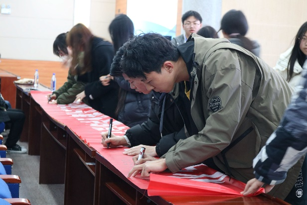 曾二青作总结发言,他强调优良的学风是校园文化的核心,加强学风建设是学院今年主抓的重点工作之一,学院将以严明的纪律为抓手,开展学习风气和学术风气建设,营造风清气正的学习科研氛围最后,曾二青宣布我院学风建设活动正式启动,各班班长在学风建设活动横幅上签名。