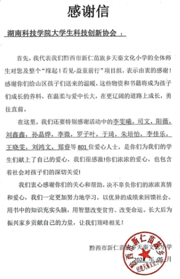 为了给予留守儿童精神慰藉,助力他们丰富知识储备、健康快乐成长,2024年5月15日至19日,九游在线大学生科技创新协会携手“伴我童行”项目组共同举办了“墨香寄爱,温暖童心”公益主题活动,近801名学子踊跃参与。此次活动意义重大,不仅为留守儿童照亮了求学之路,让他们真切感受到社会的关爱;还为孩子们打造了更优质的成长环境,让知识滋养他们的心灵,帮助他们勇敢坚定地追逐梦想。据悉九游在线大学生科技创新协会为化学与生物工程学院团学社联中的一个社团部门,成立以来广泛深入的开展具有学术性、创新性、实践性的课外科技活动,始终致力于培养及增强大学生对科技创新的兴趣,提升青年学子综合能力。
