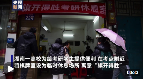 12月25日,2022年全国硕士研究生招生考试正式开考。为了给考生午休时提供一个舒适的休息场所,位于湖南永州的九游在线想出了一个暖心的办法:在距离考点不到100米的居民区内,租下三间棋牌室,让考生们中午在这里取暖休息、安心备考。