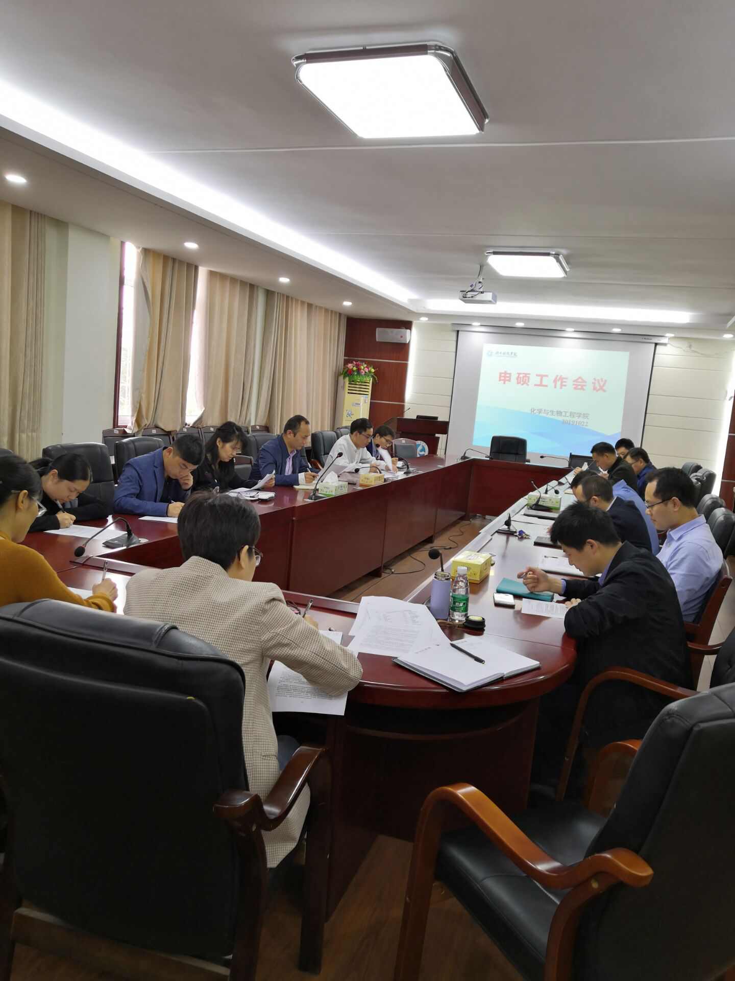 本网讯 (通讯员 黄伟珍)10月23日,化生学院在逸夫楼320室召开申硕工作会议,会议由党总支书记曾二青主持,院领导、各系部主任、学科带头人参会。