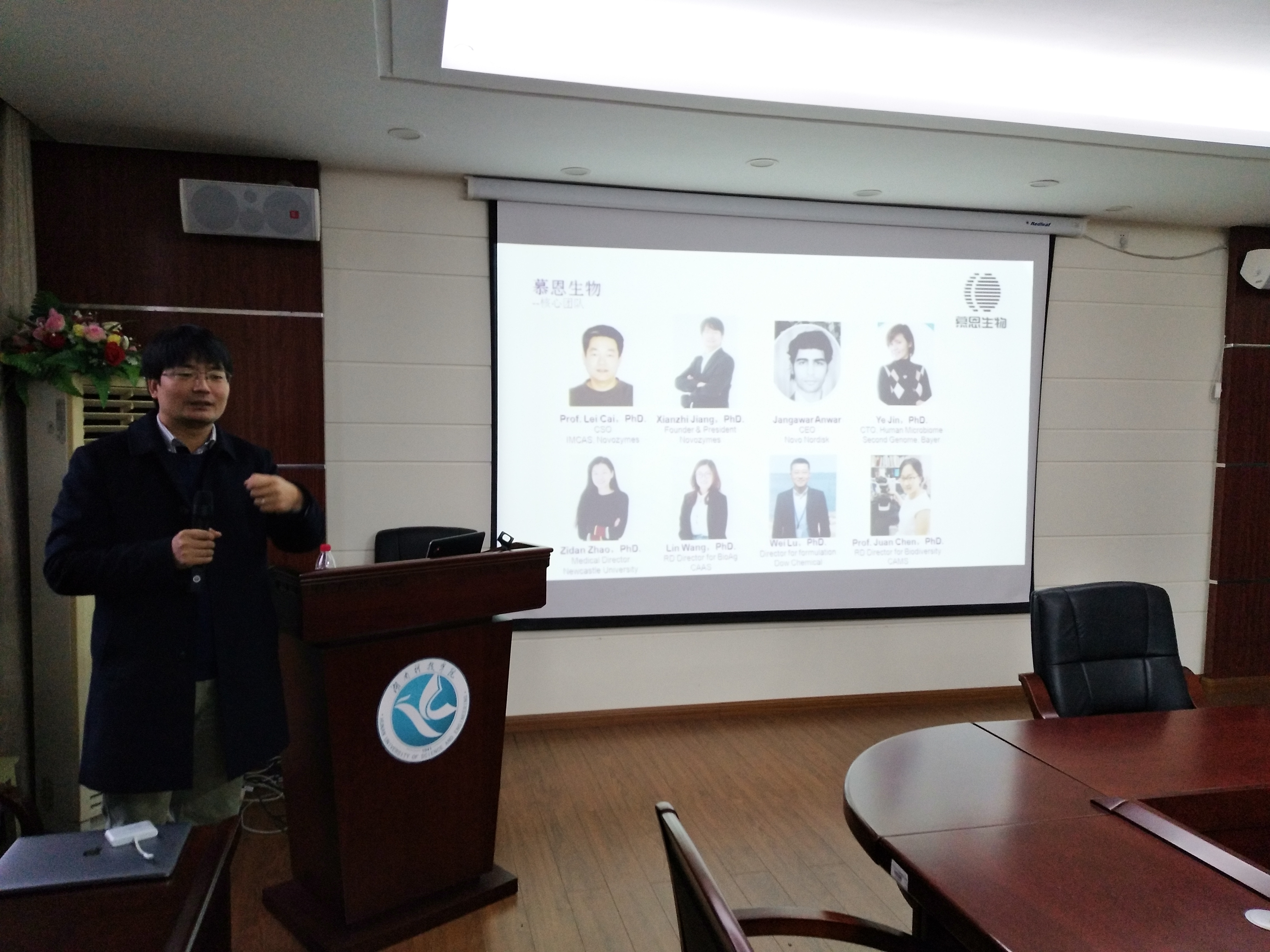 12月9日,慕恩生物科技有限公司创始人、CEO蒋先芝博士应邀来我院交流并为师生作交流报告,报告的题目为《微生物组——从新技术到新产业之路》。报告会由生物工程学科领衔人尹业师主持。
