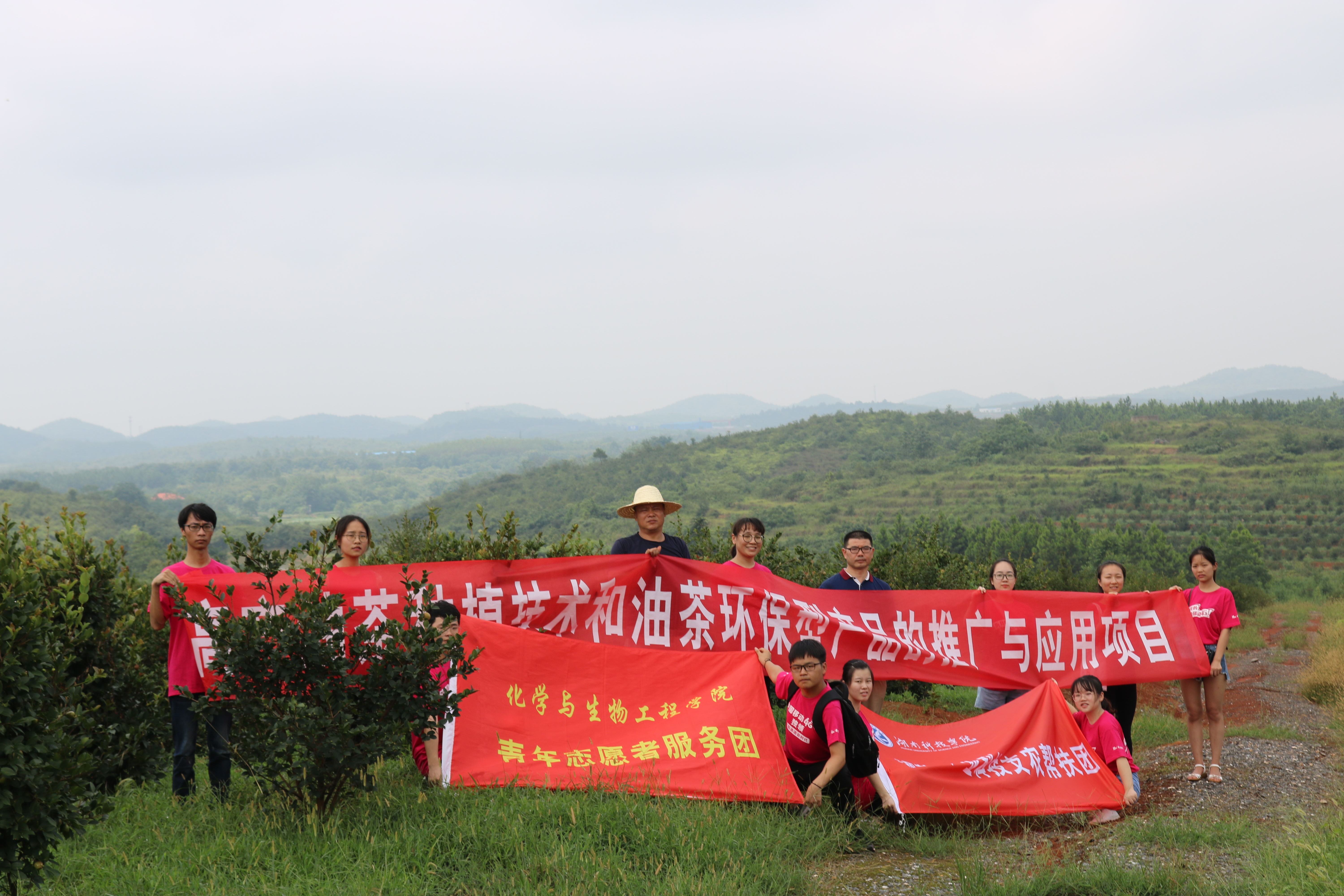 本网讯(通讯员 周闻名 唐婉婷 李劲)7月13日,九游在线化学与生物工程学院学生科技支农扶贫志愿团队一行12人赴永州市冷水滩区开展高产油茶种植技术和油茶环保型产品的扶贫推广活动。