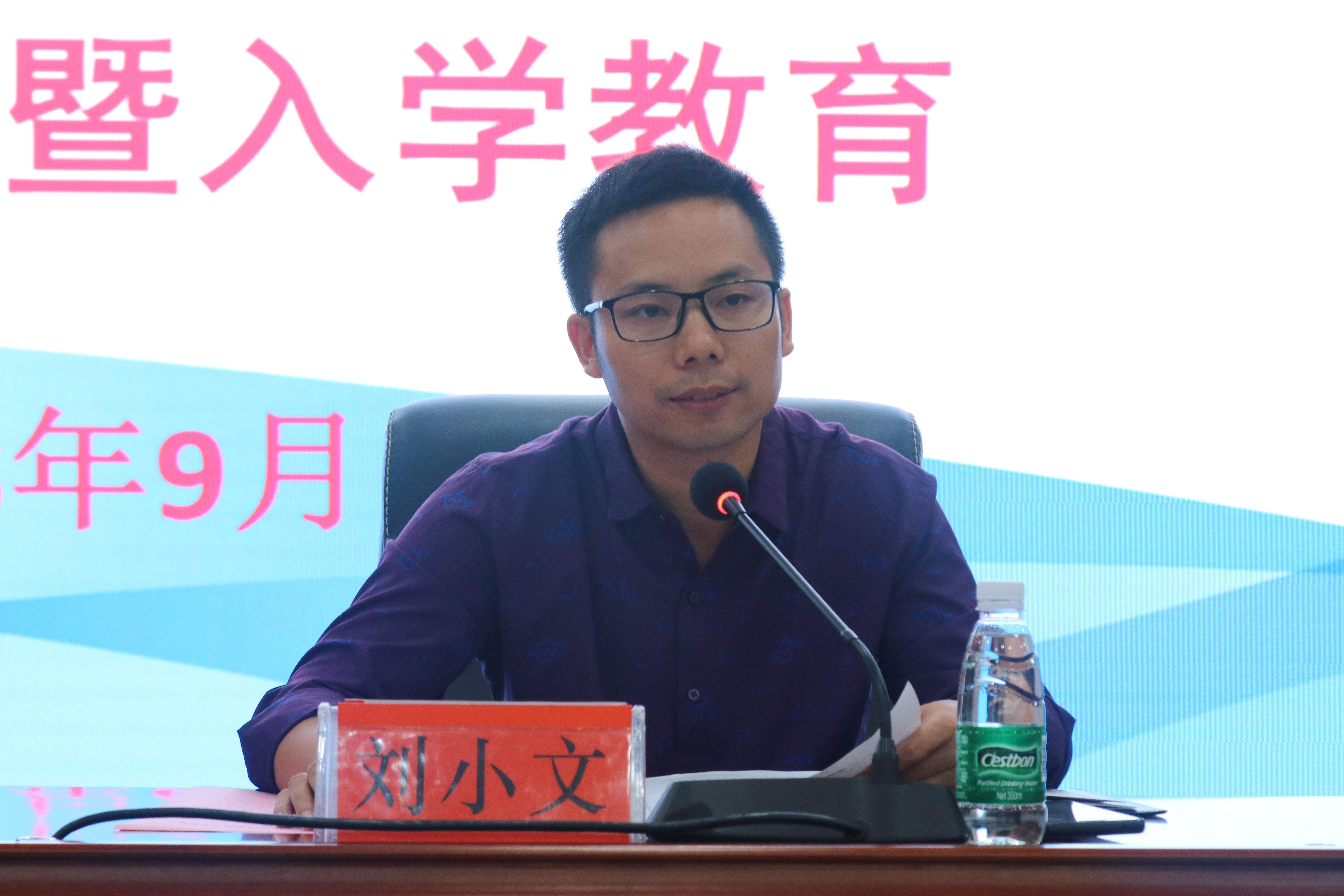 刘小文代表学院热烈欢迎新生的到来。会上,他介绍了学院师资力量、实验室条件、科研获奖、学生创业就业等各方面的情况,要求全体新生合理规划大学生活,学会生存,学会做人,学会做事,学会学习,以梦为马,不负韶华,并以“孩儿立志出乡关,学不成名誓不还。大好时光休辜负,以梦为马骋天涯”与所有新生共勉。