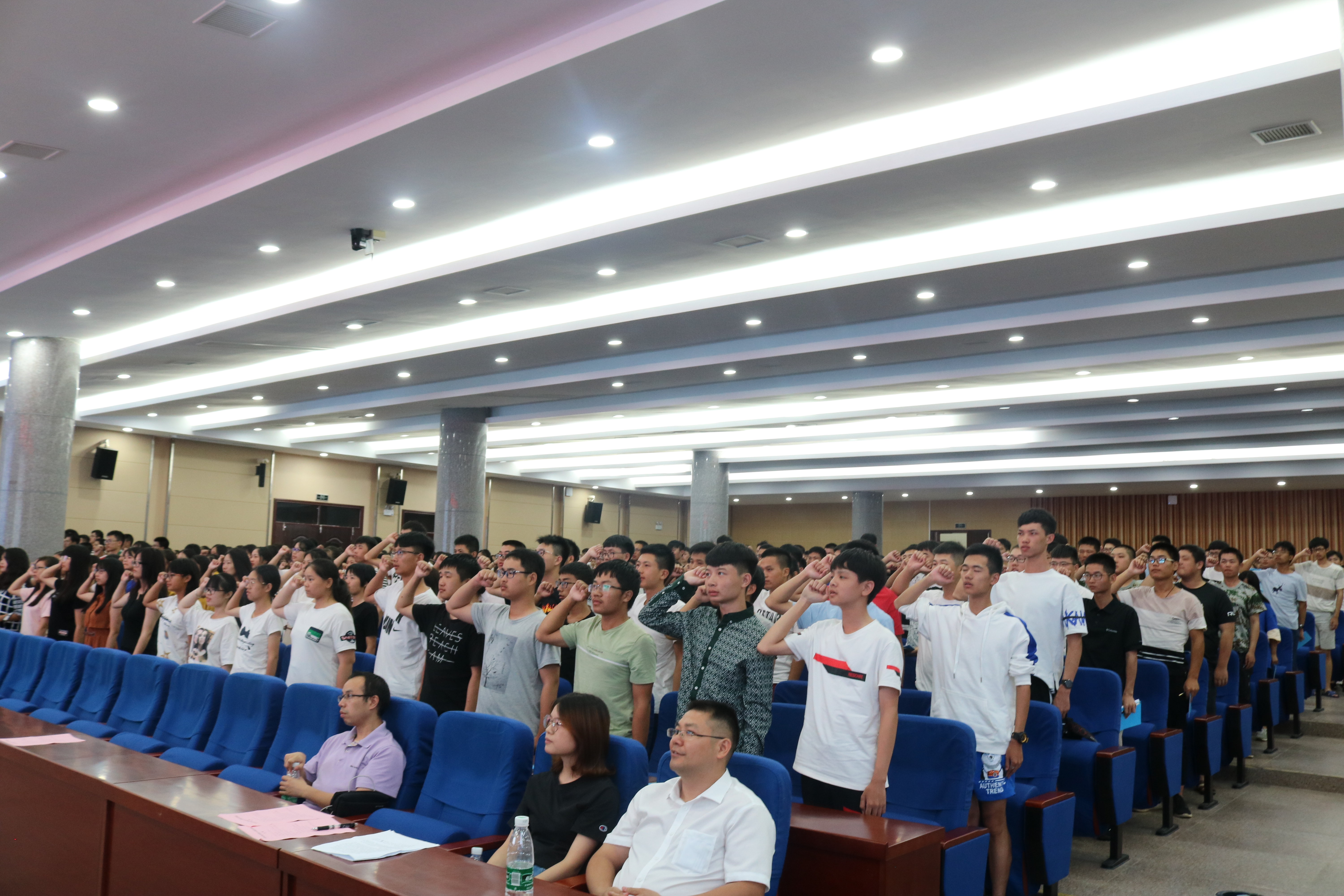 (通讯员 邓平洋,唐婉婷)我们以青春的名义,向亲爱的人民、可爱的祖国、伟大的时代庄严宣誓,我将时刻牢记亲人的嘱托、老师的教诲、祖国的培养、时代的重任……”,在915日晚潇湘大讲堂的化学与生物工程学院2018级新生见面会上,533名新生高举右手,面对誓词,庄严宣誓。