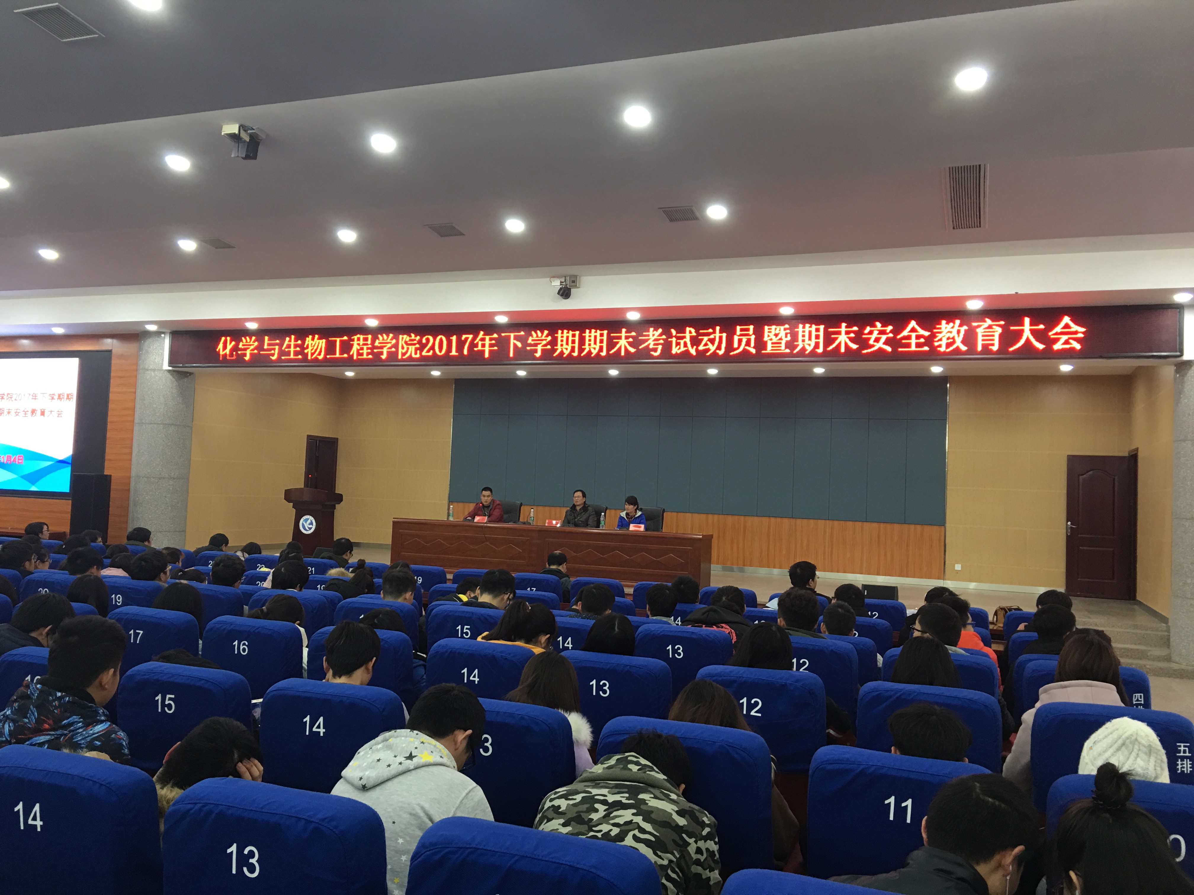 本网讯(通讯员 李劲 许欢)201814日晚,化学与生物工程学院在潇湘大讲堂开展了2017下学期期末考试动员暨期末安全教育大会。学院院党总支书记赵雨云、副院长刘芳出席会议,党总支副书记高丹主持会议。