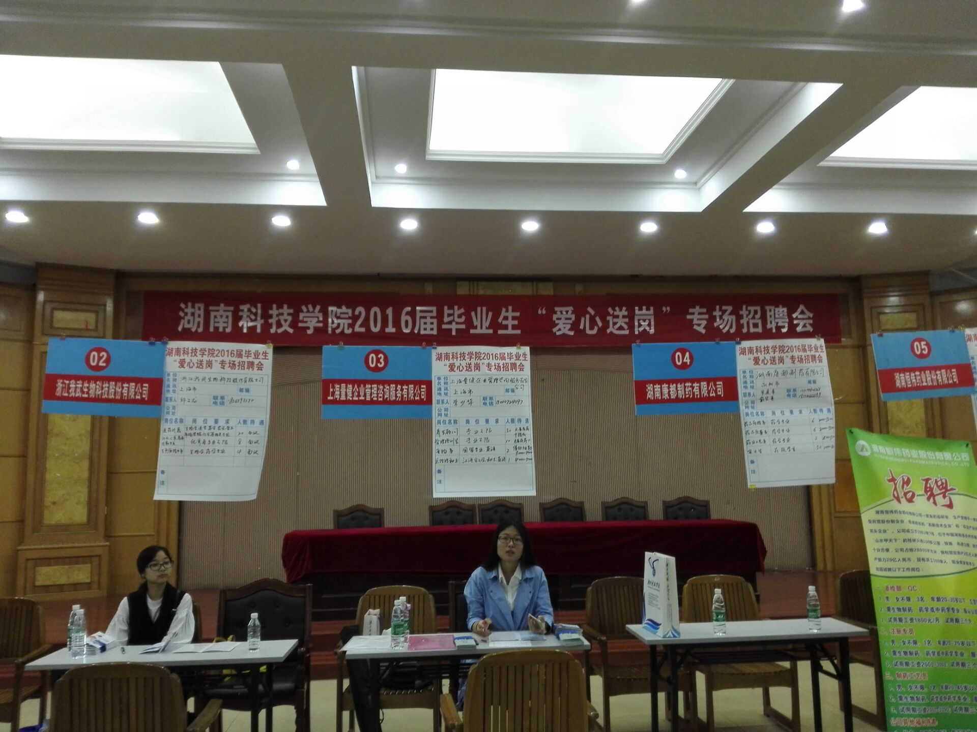 本网讯(夏慧聪)帮助学生就业,我校就业创业指导中心携化学与生物工程工程学院于4月24日在明德楼二楼多功能厅举办“爱心送岗”专场招聘会。程智开副校长、就业指导中心郑银芳、谷利民以及化生学院党总支赵雨云书记出席此次招聘会。