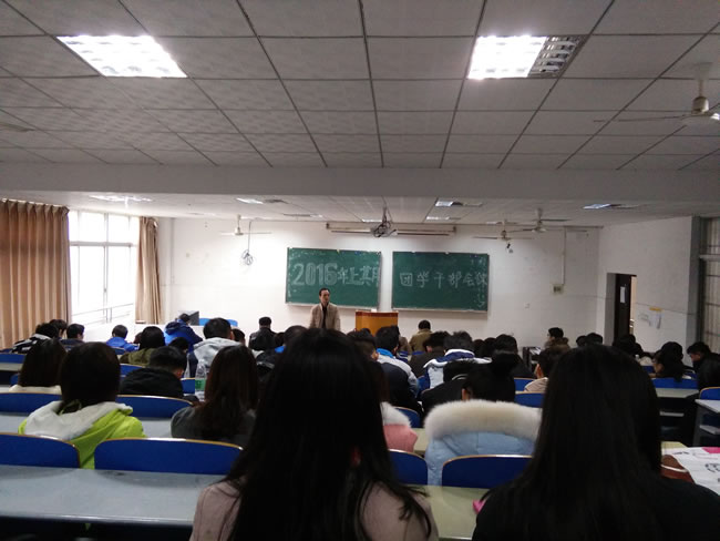 本网讯(夏慧聪 龙玉洁 卓林毅)2月24日下午,化生院在逸夫楼218举行了“以加强与改进学院工作”为主旨的团学干部会议,就新学期工作安排进行部署。会议由学工办主任饶赟主持,党总支副书记曾二青、学工办副主任周闻名、邓平洋、陈丽琼、杨忠定、吕冰等老师以及全体团学干部参加了会议。