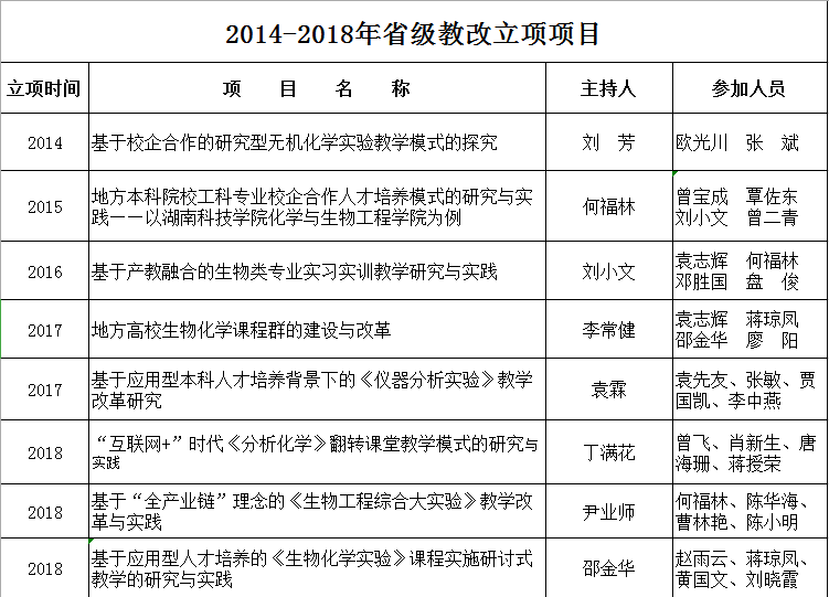 2014-2018年省级教改立项项目
