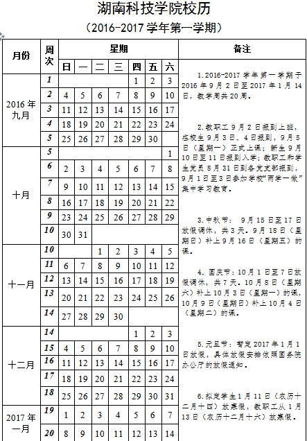 九游在线校历 (2016-2017学年第一学期)