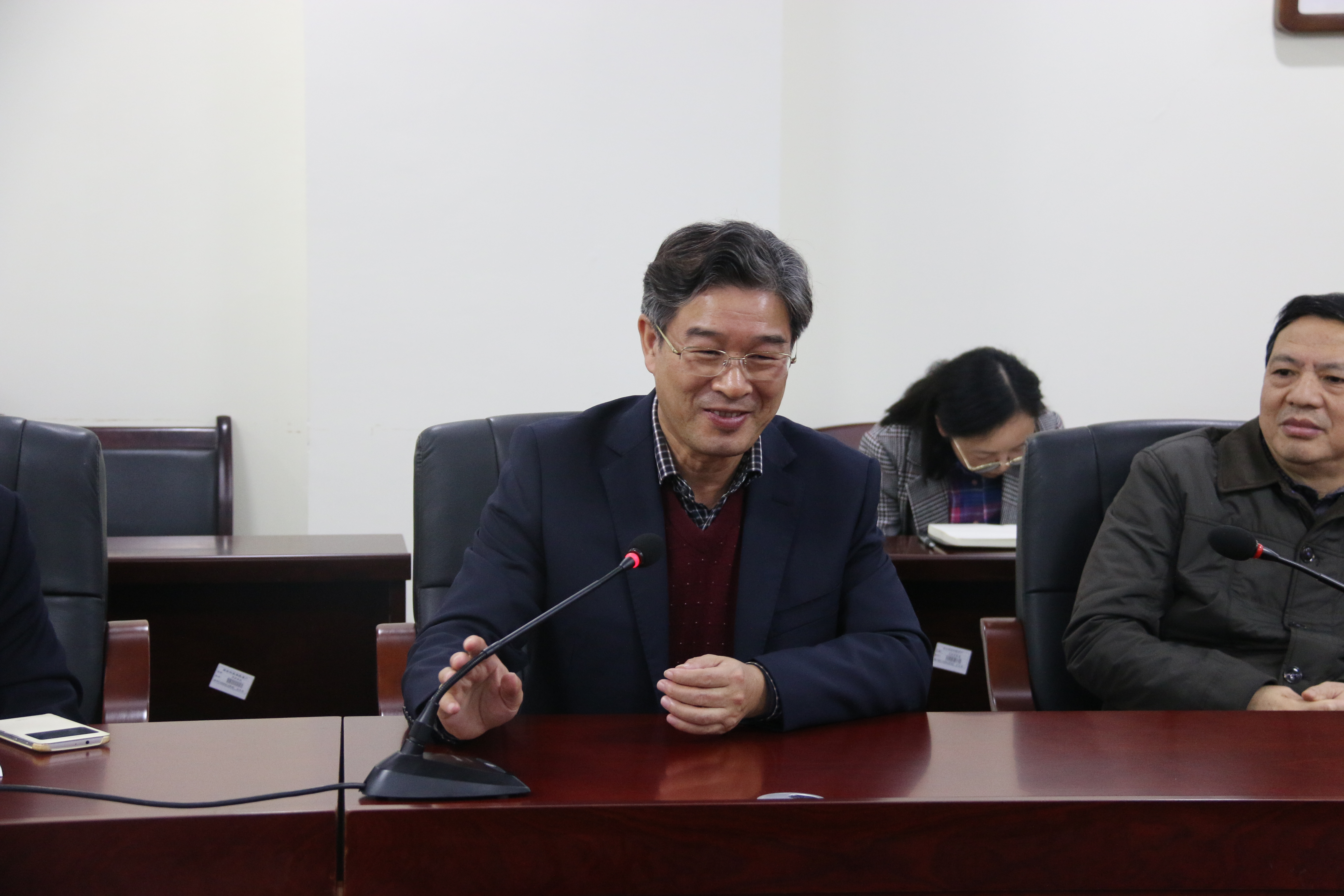 随后,我院教师代表覃佐东博士谈了两点感想:一是花千谷如今的花只有观赏,是否能将“看”、“食”、“用”结合,做出三者有机结合的多样化旅游产业;二是能否培育优良瑶药品种再与有意向的公司做出对接,实现双牌县道地药材蓬勃发展。“大学教师的职责不但要教书育人,还要为地方经济服务。花千谷的灌溉措施以及道路建设做得很好,但是美中不足的是空地过多,土地资源充分利用,具有巨大潜力。”李治章教授也谈了自己的感受。会议期间,我院教师与唐彦一行交换着自己的意见,不断挖掘合作项目推进的可能性,会议气氛高潮不断。