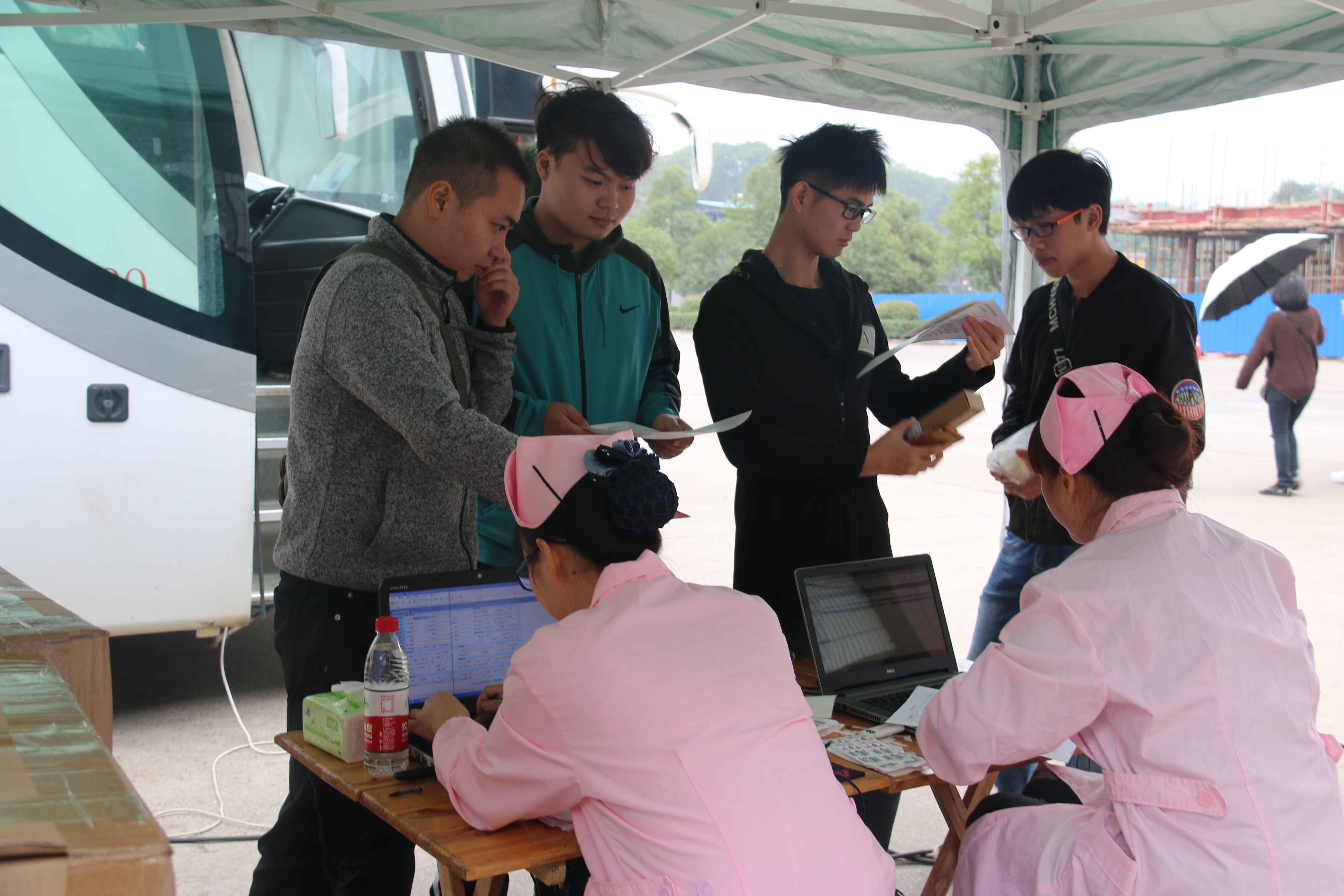 寒风烈烈,挡不住志愿者的热情;秋雨飘飘,沾不湿献血者的期盼。在志愿者的组织下,献血者按顺序进行填表登记、血型检测和抽血。已入深秋,飒飒的寒风拍打在帐篷上,但却没能阻挡献血者们的热情,这无疑是“人人为我、我为人人”的最好体现。在工作人员的讲解与鼓励下,每一位奉献爱心的同学纷纷献出了300cc或400cc的血。