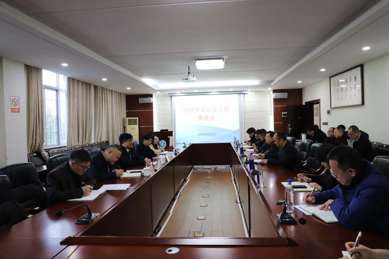 (本网讯 刘乐 陈奕)为加快推进师范类专业认证工作,加强学校专业建设,提升人才培养质量,做好师范专业认证各项准备工作,12月5日,在逸夫楼320会议室召开师范专业认证工作推进会。校党委书记李钢,副校长李常健、何福林、教务处处长张剑出席会议,化学与生物工程学院、马克思主义学院、理学院主要领导参加此次会议。会议由化学与生物工程学院党总支书记曾二青主持。