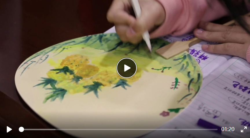 草长莺飞、早春景色的《村居》,百花盛开、暮春景色的《晚春二首》……活动中,大学生志愿者给每个孩子准备了一个团扇,上面是志愿者精心书写的春日诗词。“古诗词里面有哪些春景呢?”“用什么颜色来描绘?”在与孩子们的进一步沟通交流中,志愿者不断给他们引导和鼓励,孩子们在小小的团扇上放飞想象的翅膀,敞开心灵的窗口,一笔一画,勾勒出别具一格的“艺术作品”,在古诗词中寻觅浓浓的春意。
