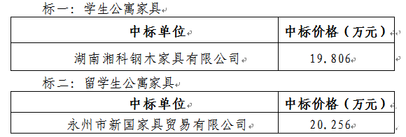 九游在线采购中心对九游在线2018年学生公寓及留学生公寓家具采购项目于2018年7月17日进行了自行招标,经评审,现将结果公告如下:
