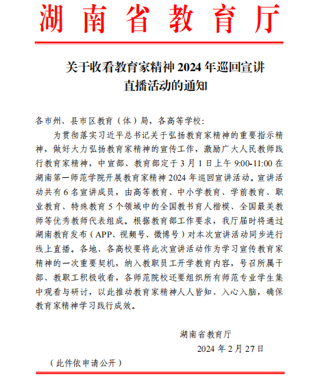 关于收看教育家精神 2024 年巡回宣讲直播活动的通知