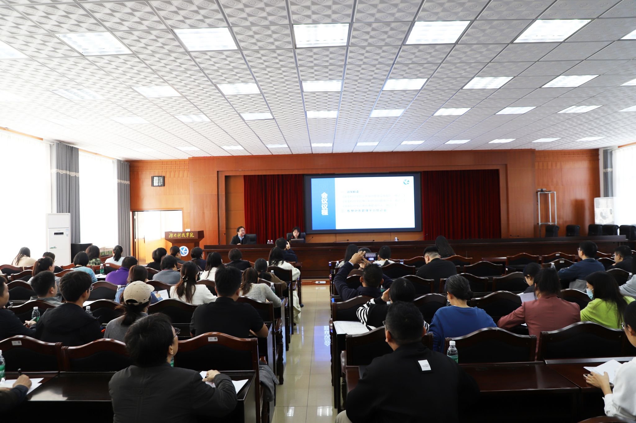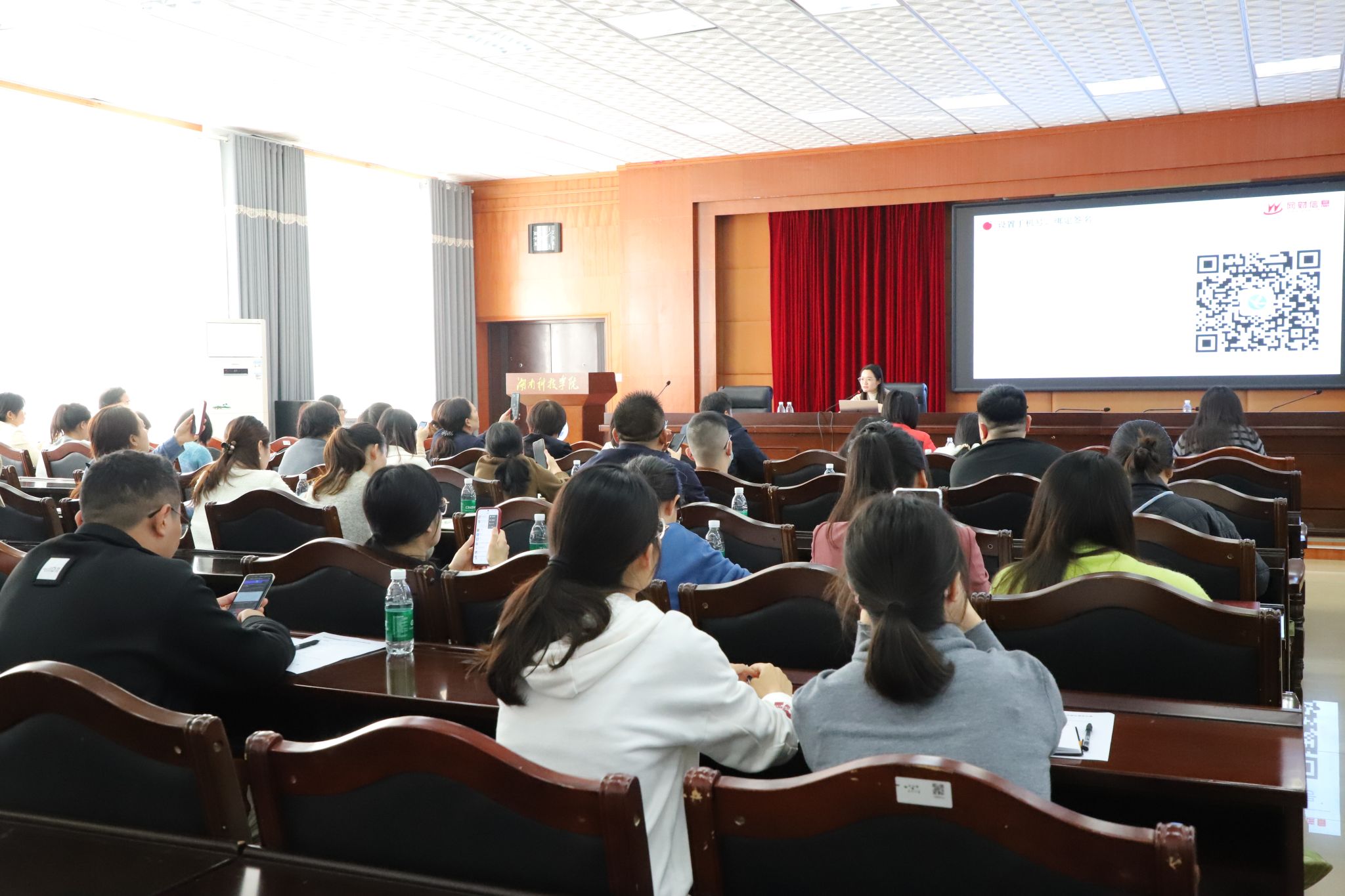 培训会上,党政办公室副主任邱佳佳、科技处社会科学管理科科长胡晓、计划财务处支出管理科科长宋怡昕就新修订的公务接待管理办法、横向科研项目管理办法、差旅费管理办法进行了政策解读。智慧财务系统供应商长沙网财信息技术服务有限公司工程师对智慧财务软件系统登录、项目授权、查询及调整、网上报销系统、票税宝APP、个人收入系统、手机签批、合同结算管理系统等方面进行了专业讲解和演示,并对教职工日常使用中存在的难点和问题进行了逐一讲解。