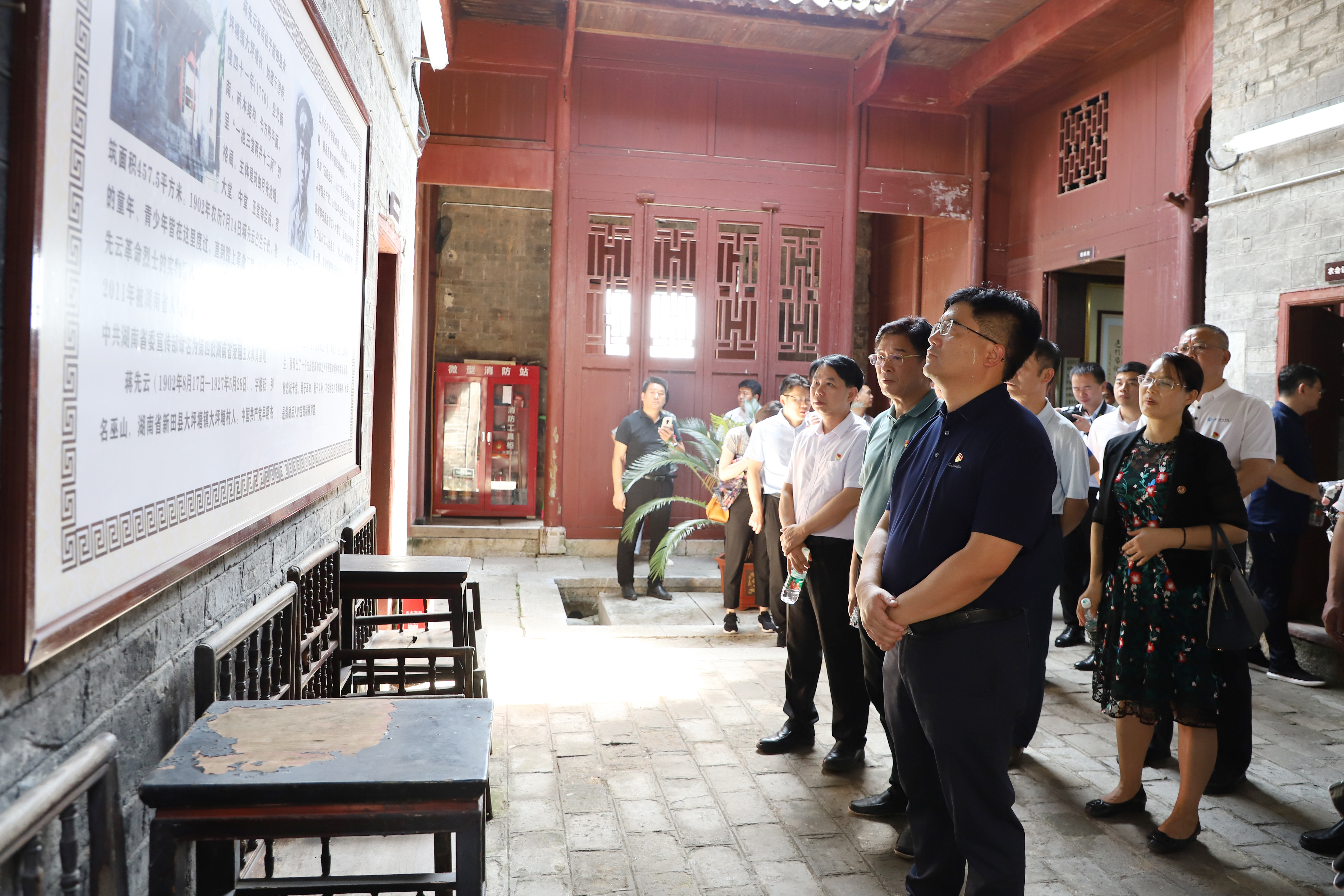 7月4日,全体领导干部来到新田县蒋先云故居、小源会议旧址等地,开展革命传统教育。在蒋先云故居,大家了解了蒋先云烈士“生为革命,死为革命”的英雄事迹,深刻体会蒋先云烈士“头可断,而共产党籍不可牺牲”的铮铮誓言以及矢志不渝的爱国主义情怀和革命信念。在小源会议旧址,大家详细了解红六军团两次过境新田的历史,以及小源会议对红六军团抢渡湘江的历史贡献及其重要意义。
