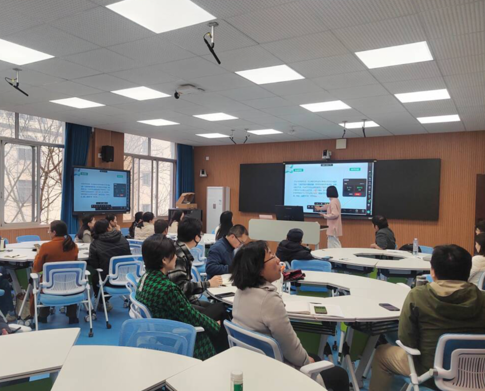 会上,企业培训师以研讨、互动教学方式方法、精品课程录制、数字化教学资源库构建等内容为切入点,从一线教师教学中的实际问题出发,探索利用数字化手段助力课堂转型。为我校教师开展智慧教学技能及现代教育技术设备使用展开了一系列的培训和探讨。