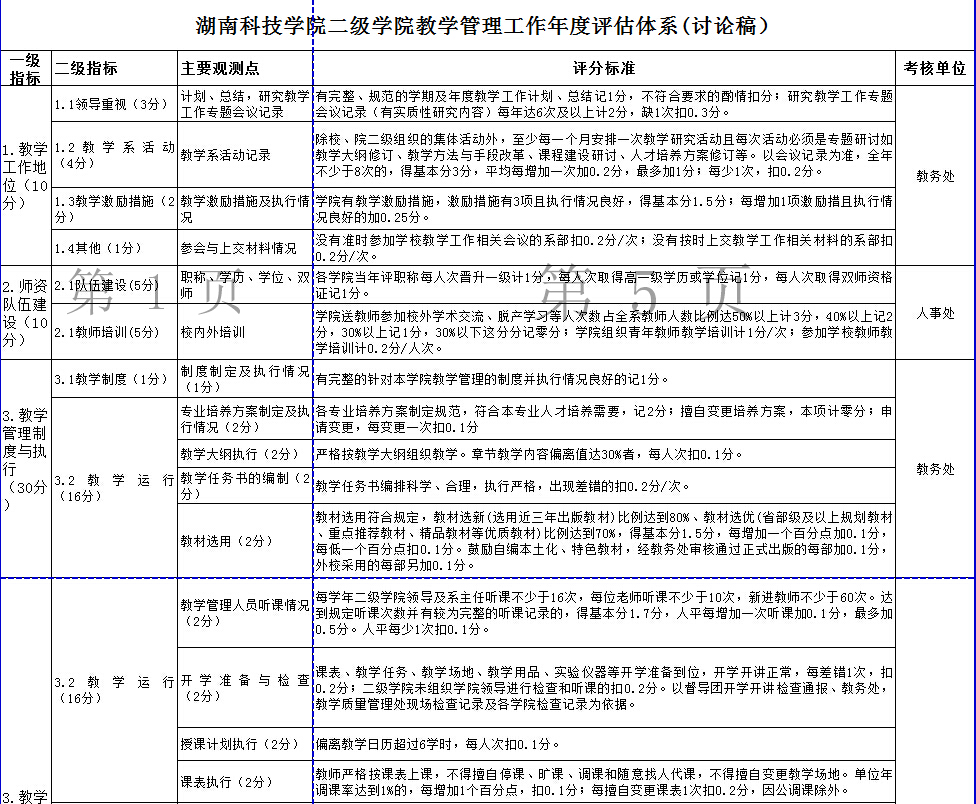 九游在线二级学院教学管理工作年度评估体系(讨论稿)
