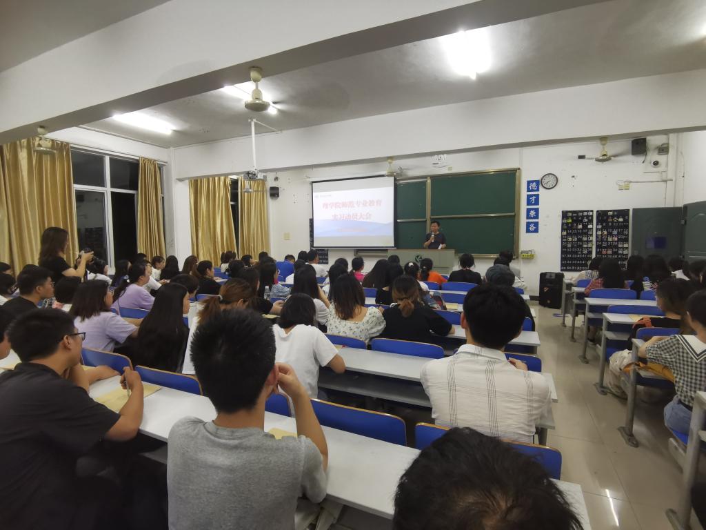 本网讯(通讯员蒋晓霞)2021年9月8日晚,我院在明理楼召开师范专业教育实习动员大会。出席会议的有理学院院长唐耀平、党总支书记唐卫华、党总支副书记黎建军、副院长孔永红,及2018级193名即将奔赴实习岗位的师范生。