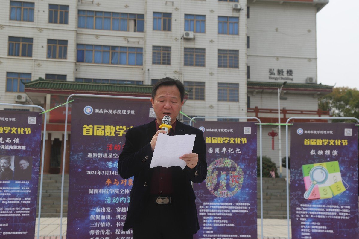 本网讯(通讯员蒋晓霞)3月14日是国际数学节暨国际圆周率日,为纪念中国古代杰出数学家祖冲之,伟大的物理学家爱因斯坦诞辰142周年,我院于文化广场举行首届数学文化节,理学院院长唐耀平、党总支书记唐卫华、副书记黎建军等莅临活动现场。