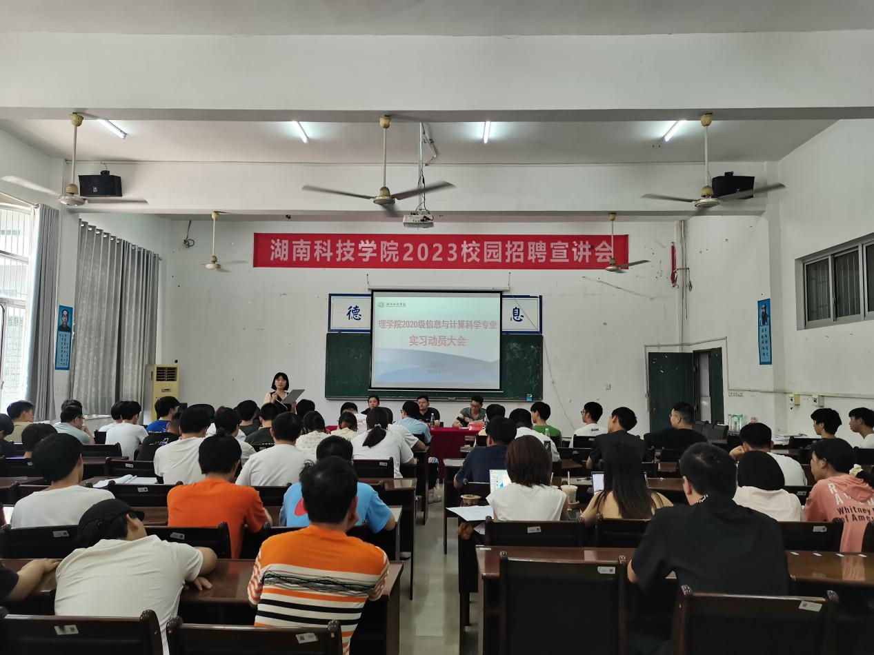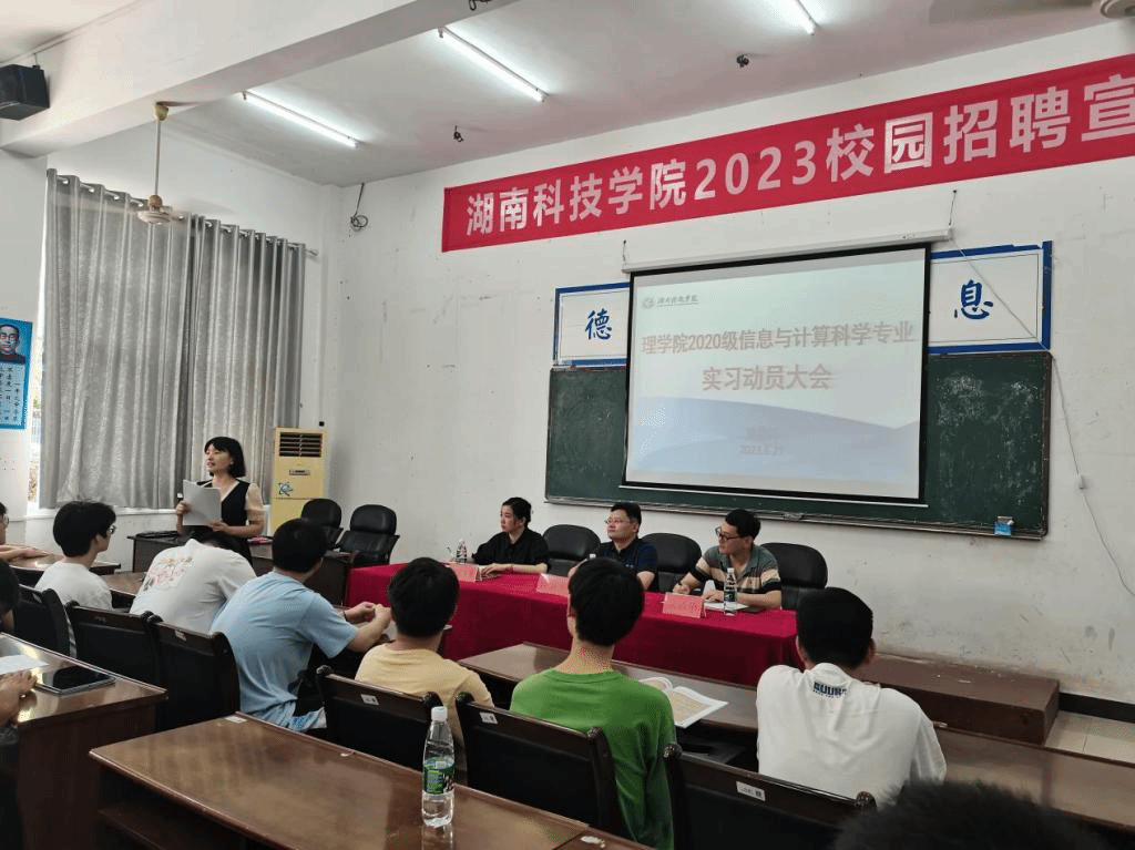本网讯(李静 杜俊杰)2023年6月27日下午,理学院在明理楼101会议室成功召开2023年信计专业实习、就业动员大会。学院党总支书记唐卫华、学院党总支副书记欧阳素勤、学院副院长吴清华、辅导员出席了动员大会,全体实习学生参加。会议由计算科学系系主任李静老师主持。