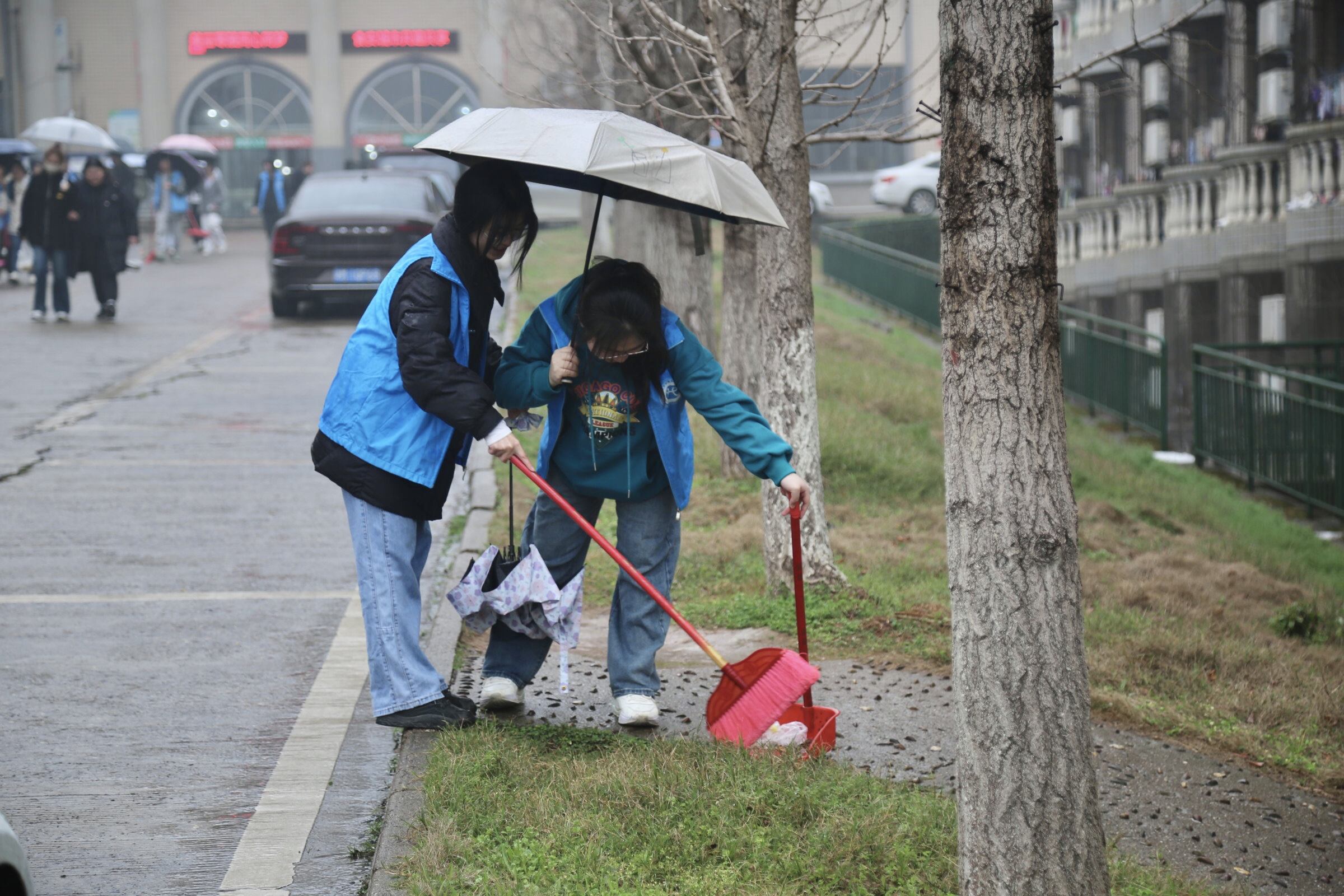 活动伊始,志愿者们于明理楼集合完毕,带上劳动工具,穿好志愿者服,整装待发。在清扫过程中,志愿者们分工明确,有的轻轻扫去小道间散落的落叶;有的弯腰拾起地上的烟头;还有的志愿者就蹲着夹起水沟里的包装袋……大家分工合作,以确保每个卫生死角都有人负责。经过一番努力后,地上的垃圾袋、烟头、纸团等被志愿者们一一清理干净,志愿者也不禁感慨道:“只要每一个人对身边的环境做出一点小小的贡献,就能创造一个干净温馨的校园!”