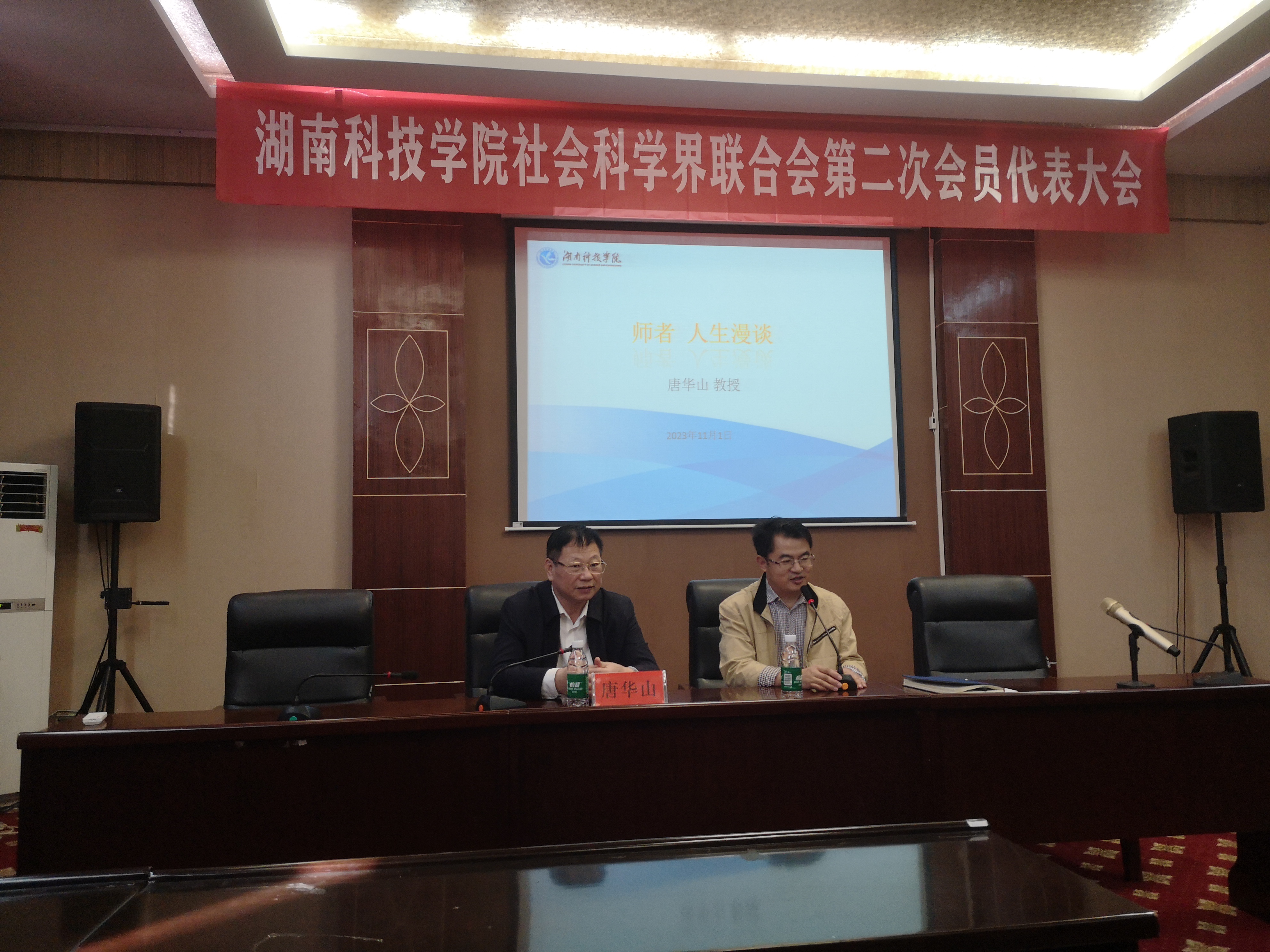 10月31日下午,我校思想政治工作研究所所长,研究员,原学生工作部(武装部)部长、湖南省高校师生学习党的二十大精神巡讲团成员唐华山教授,在行政楼六楼会议室为马克思主义学院全体青年教师开展名为“师者,人生漫谈”的专题讲座,讲座由马克思主义学院党总支书记郑向晖主持。